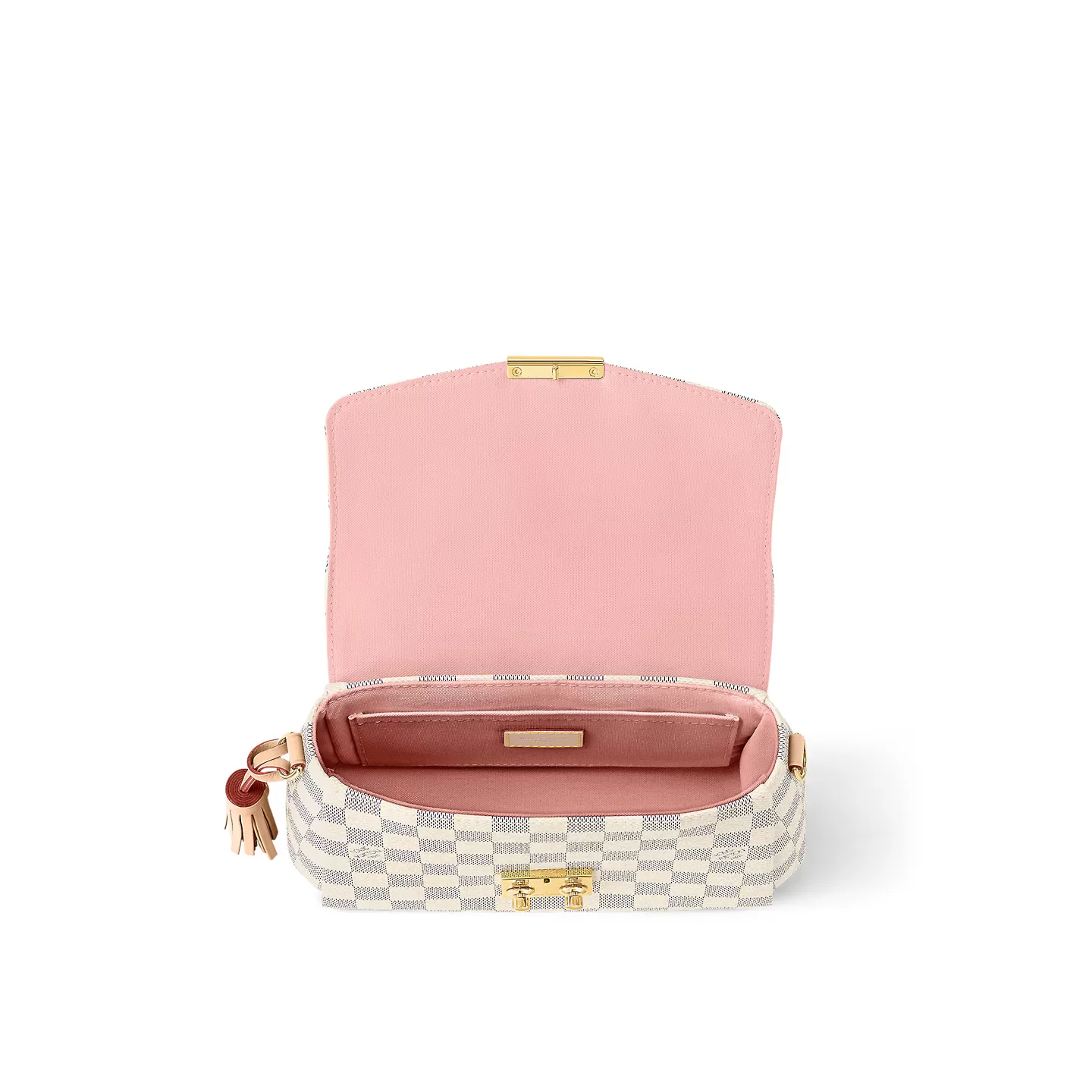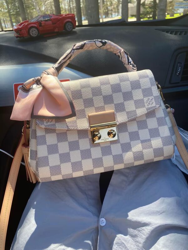 The LV Croisette in the white Damier Azur pattern is incredibly elegant and soft-looking. The bag’s small, refined exterior combined with the pink interior gives it such a charming, feminine feel. It’s perfect for both commuting and shopping!