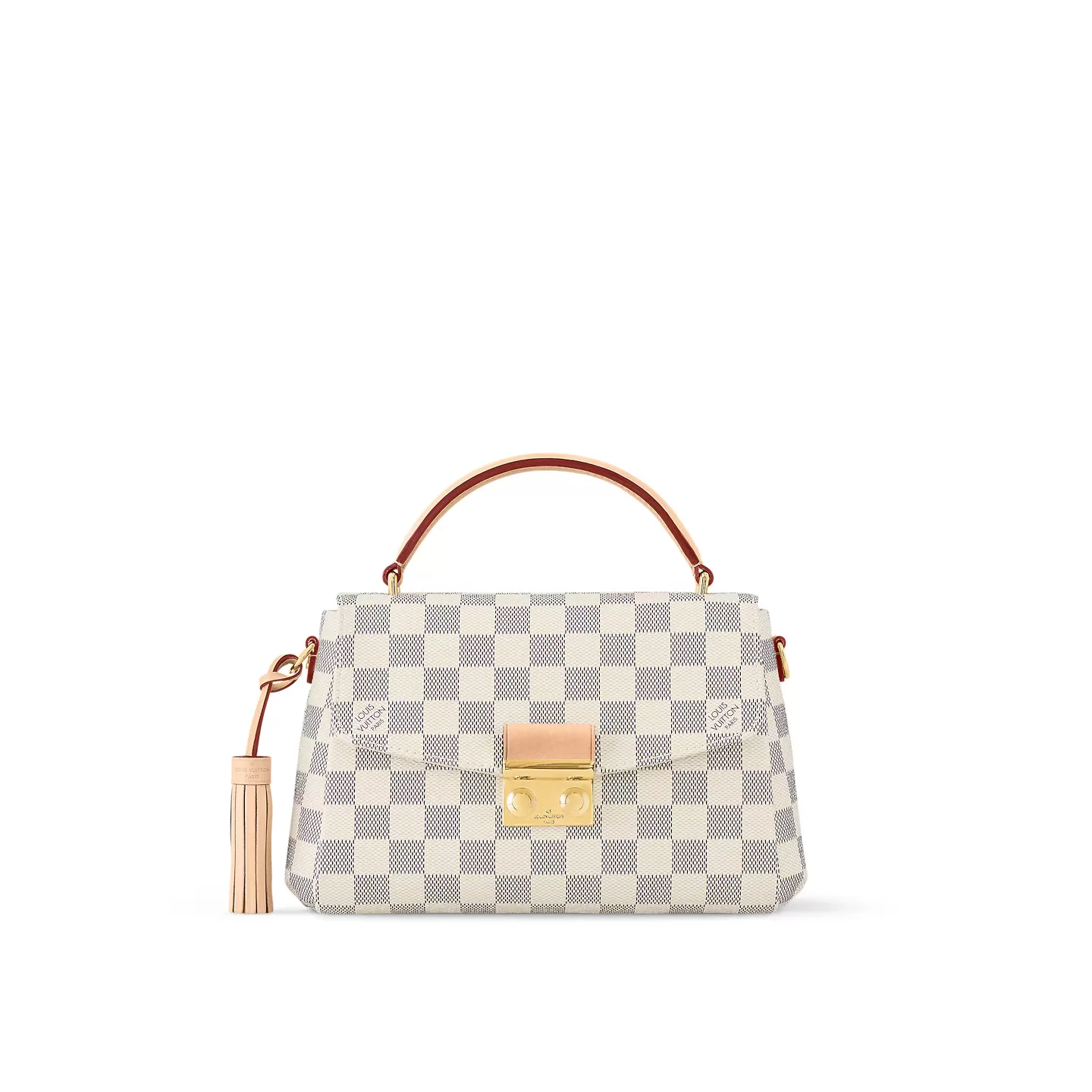 A compact bag with modern lines, the Croisette in summery Damier Azur canvas boasts sophisticated details (note the signature S-lock) and a casual-chic allure. The removable leather tassel adds a touch of fun. Sized to fit the essentials plus a long wallet, this versatile piece can be hand-carried, slung over the shoulder or worn cross-body.