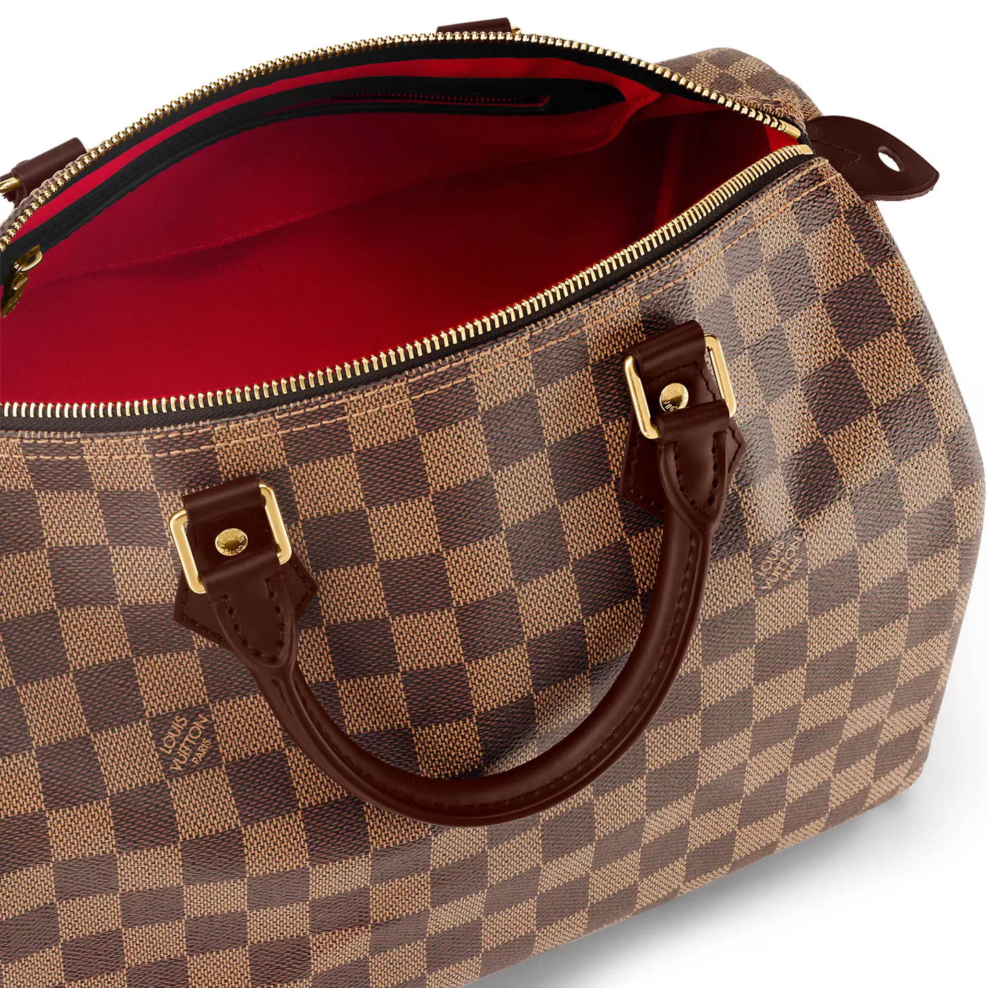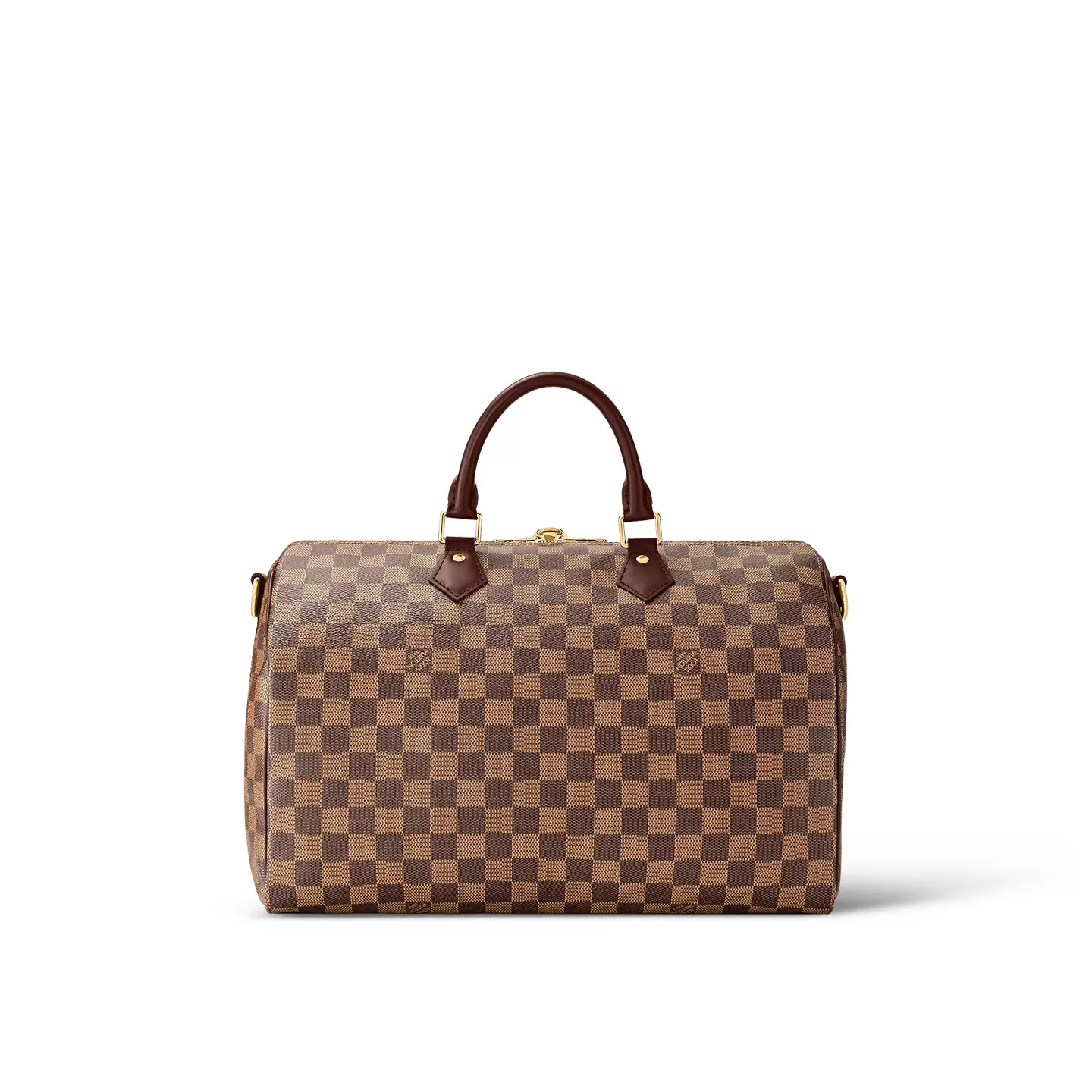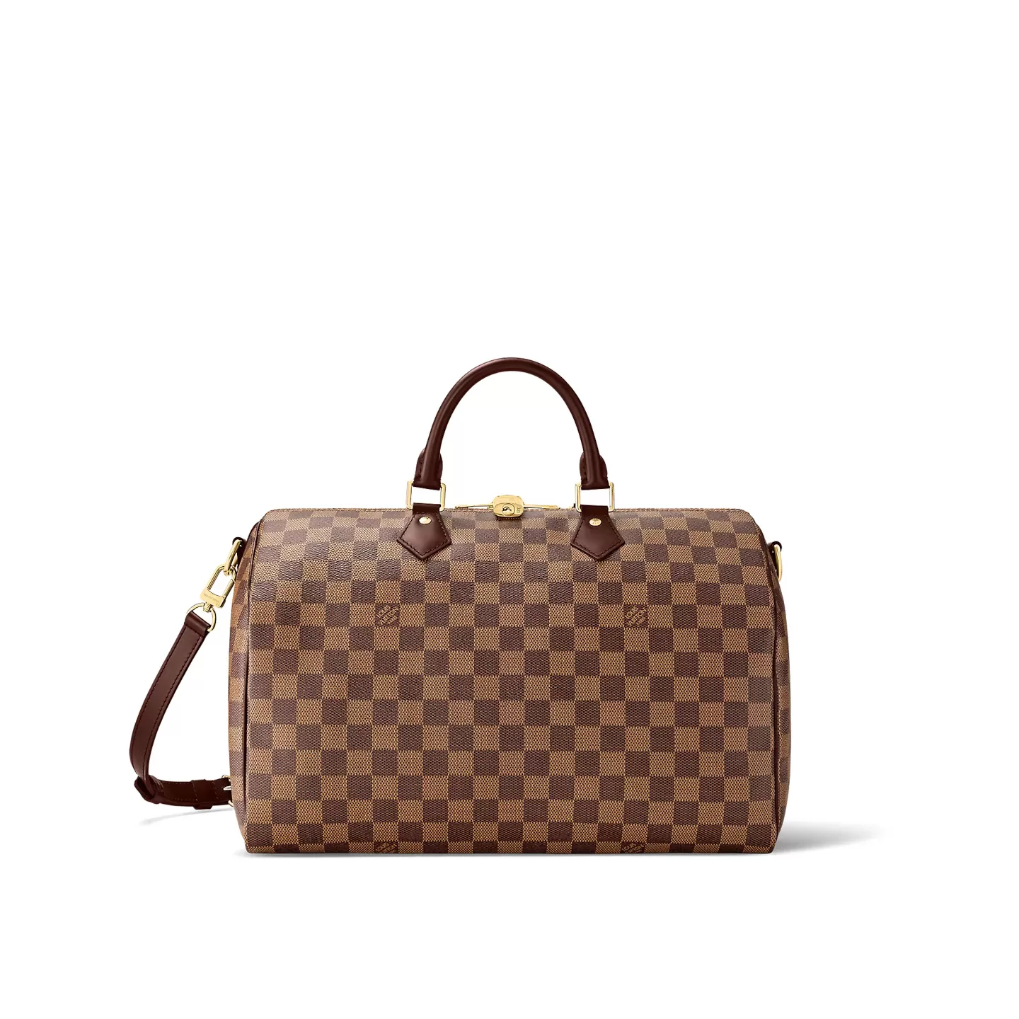 A timeless handbag that is always on-trend, the Speedy Bandoulière 35 in Damier Ebene canvas holds all the essentials for busy lifestyles. Originally created for travelers in the 1930s – the name refers to the era’s rapid transit – every feature of the Speedy’s design is iconic, from its unmistakable shape to the rolled leather handles, engraved padlock and detachable strap.