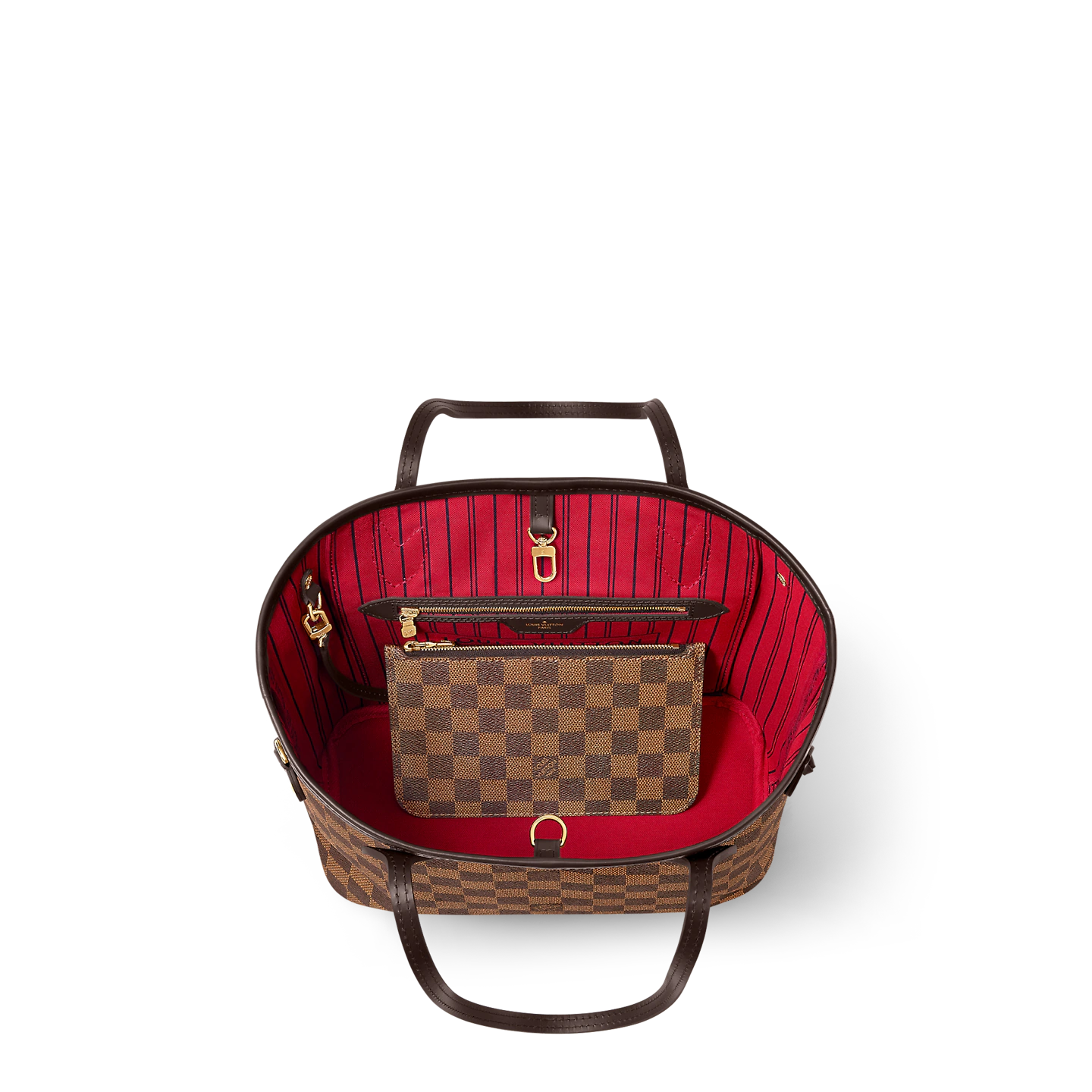 The Neverfull PM tote pairs timeless design with heritage details. Crafted from Damier Ebene canvas with natural cowhide trim, it is capacious yet not bulky, with side laces that cinch for a sleek allure or loosen for a casual look. Slim, comfortable handles slip easily over the shoulder or arm. Lined in colorful textile, it features a removable pouch which can be used as a clutch or an extra pocket.