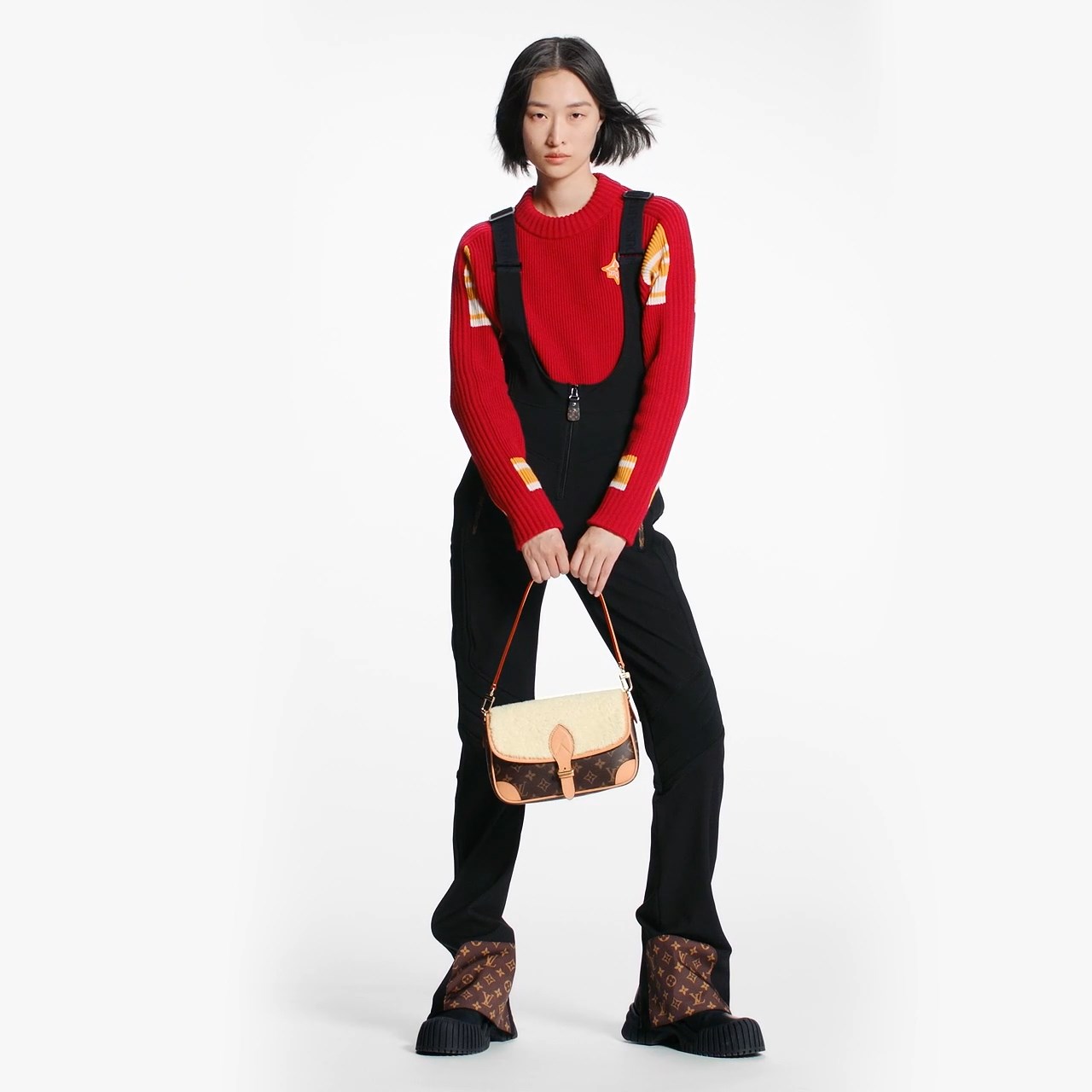 Soft, cream-hued shearling combines with iconic Monogram canvas in the Diane bag, new for Winter 2022. Part of the Cozygram capsule collection, this covetable model is detailed with aged natural cowhide trims and gleaming gold-finish hardware. The detachable top handle and long leather strap offer a range of styling and carry options.