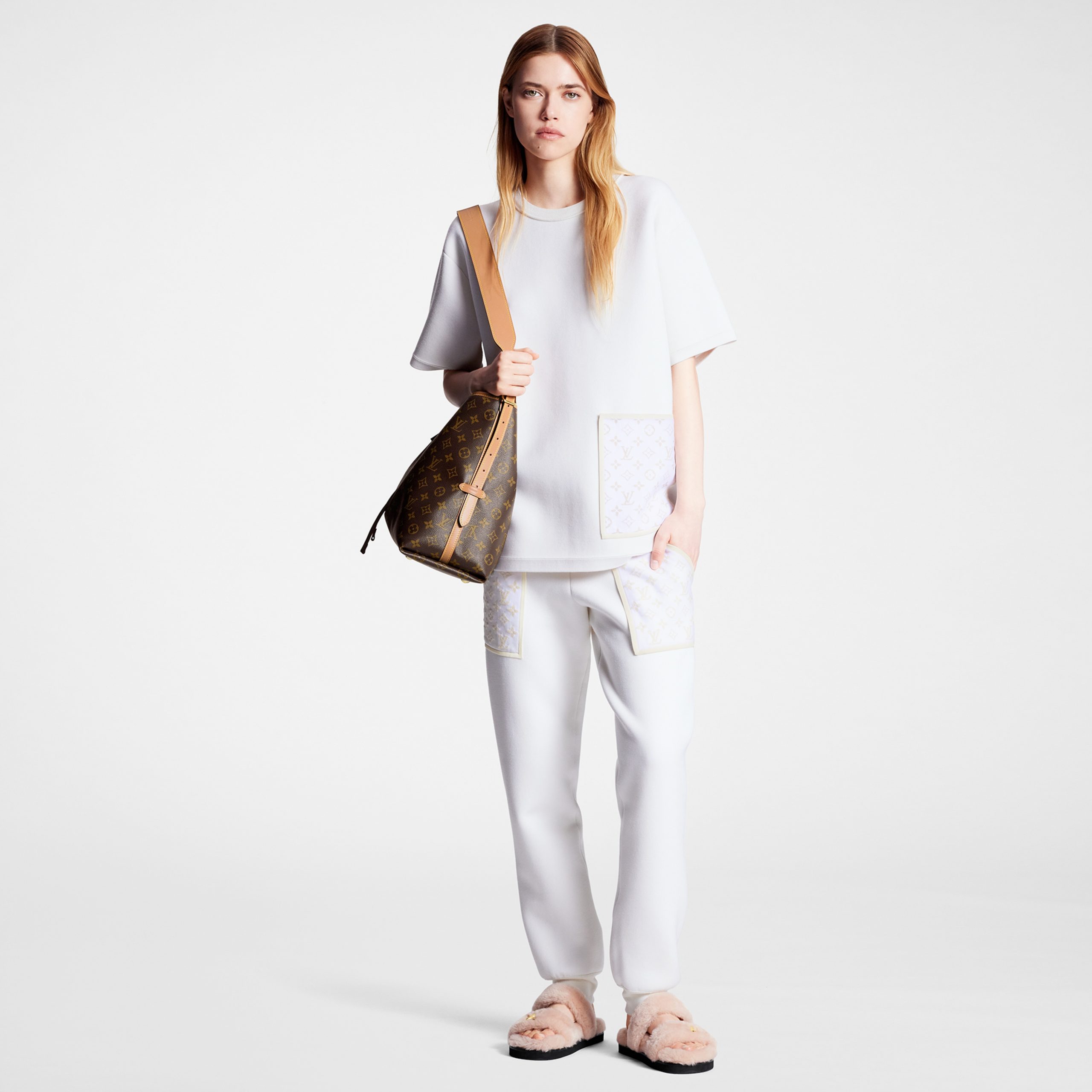 The LV Sunset flat comfort mule is crafted from fluffy shearling for ultimate softness and comfort. Ideal for travel and both indoor and outdoor wear, this on-trend model features two straps: one adjusted with velcro, the other embellished with a gold-tone LV accessory. An anatomic insole and lightweight micro outsole complete this design.