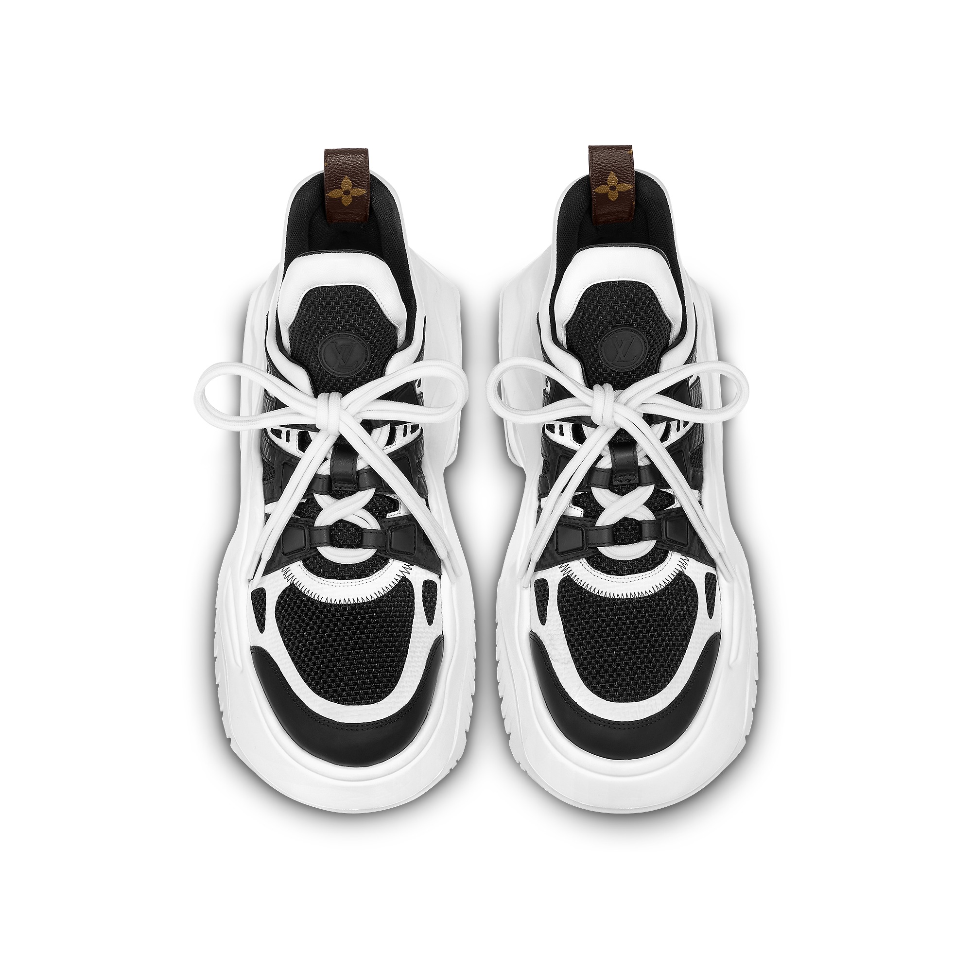 This graphic, bicolor version of the LV Archlight 2.0 platform sneaker comes in a mix of materials, including calf leather and technical mesh. Its oversized, wave-shaped outsole was inspired by that of the cult LV Archlight sneaker. Another key feature of this on-trend style is its exaggerated tongue, which is embellished with a rubber LV Circle signature.