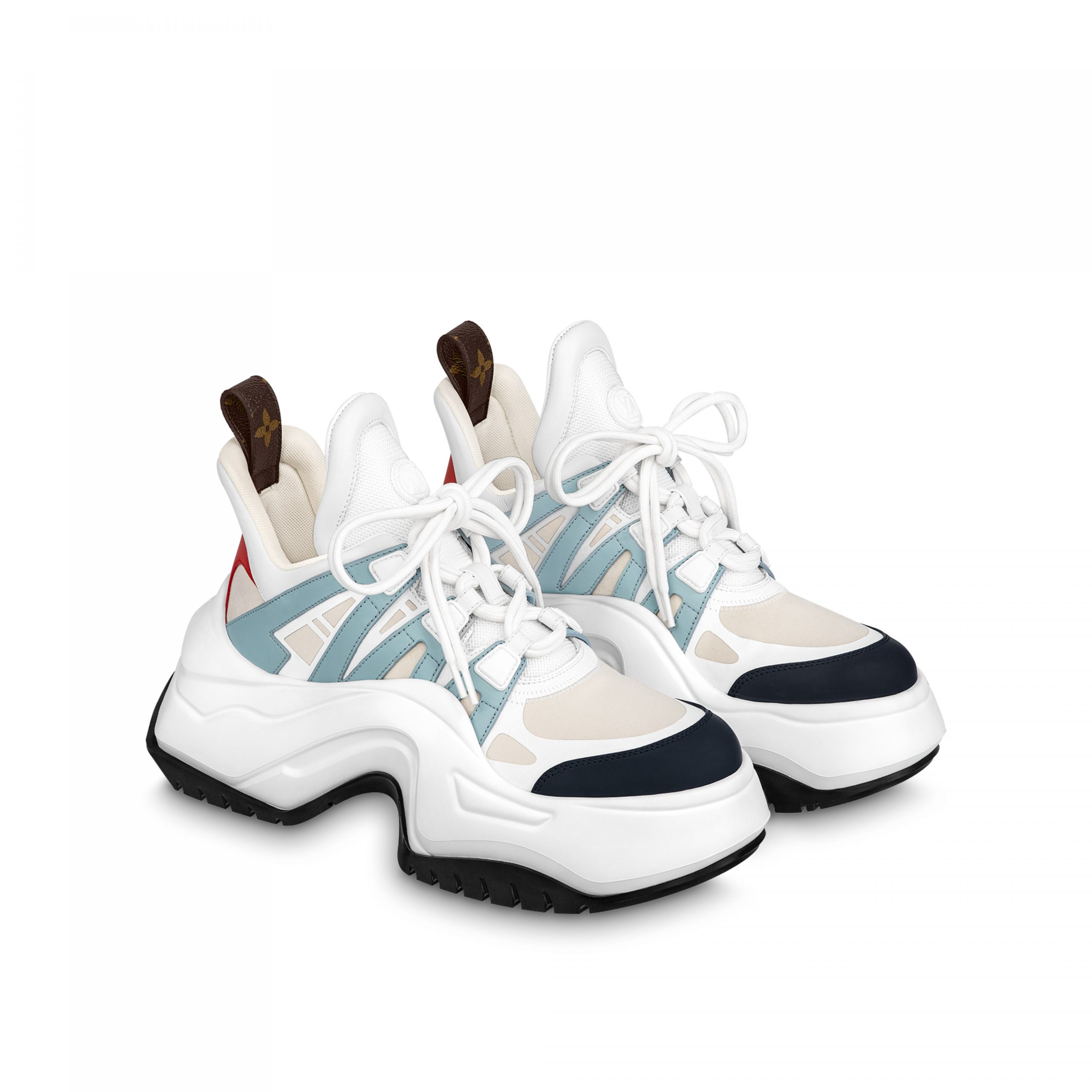 The LV Archlight 2.0 platform sneaker references the cult LV Archlight sneaker. This model was directly inspired by the original LV Archlight, first seen on Louis Vuitton’s Spring-Summer 2018 runway. Crafted from a mix of materials, including calf leather and technical mesh, it is instantly identifiable by its graphic, oversized outsole.