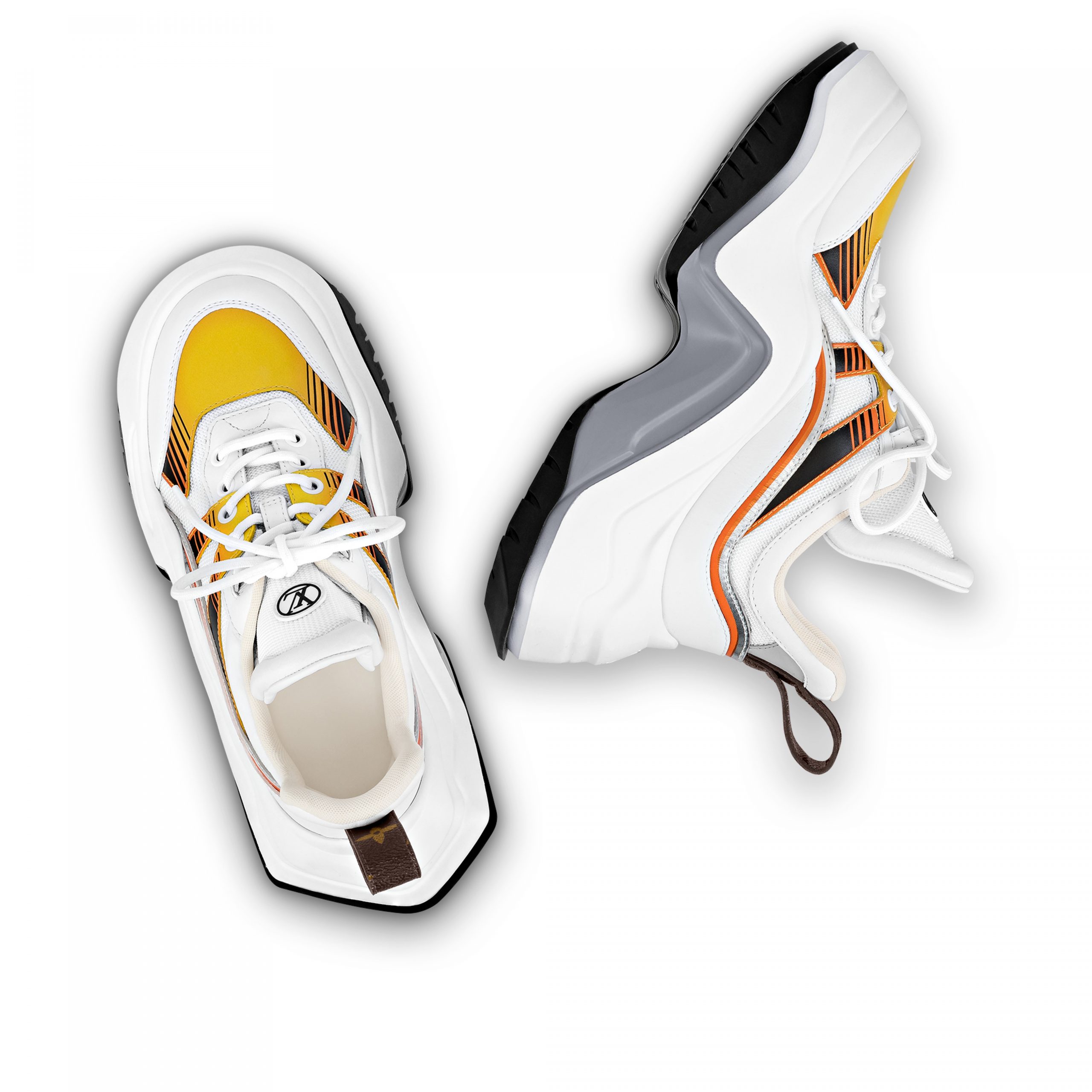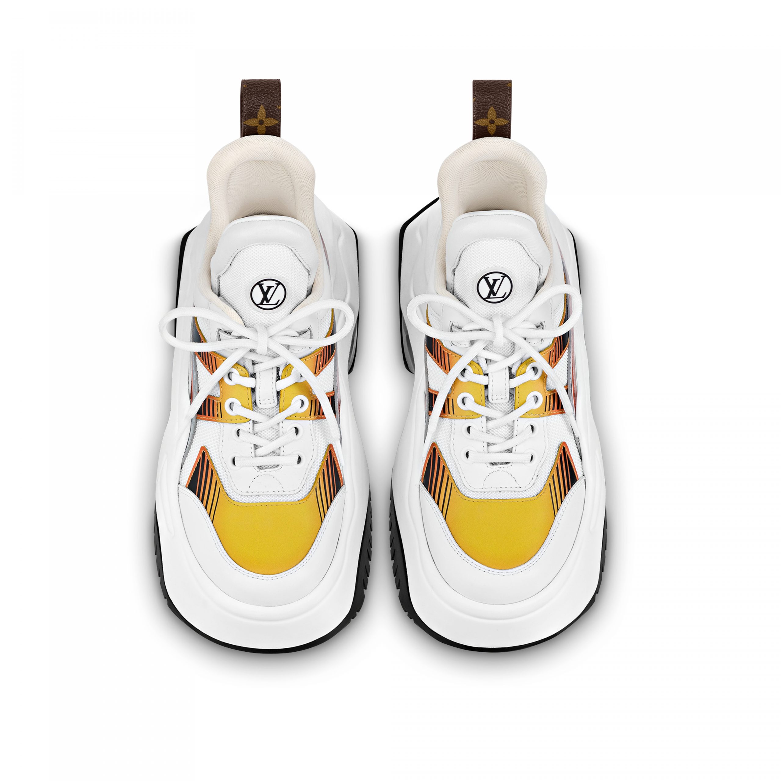 This version of the LV Archlight 2.0 platform sneaker comes in calf leather and technical mesh, with flashes of color creating a sporty aesthetic. Inspired by the cult LV Archlight sneaker, this avant-garde model features a graphic rubber outsole and an oversized tongue, which is signed with a rubber LV Circle logo. A back loop in Monogram canvas completes this design.