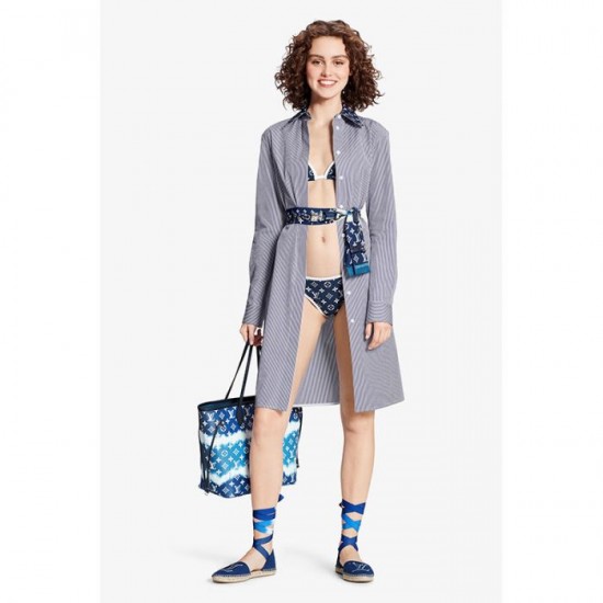 Inspired by the ancient Japanese technique of knotting and folding fabric before dyeing it, the Louis Vuitton Escale Collection brings a touch of summer to the Neverfull MM tote in a Tie-Dye Monogram canvas. Tighten the laces and this versatile tote bag becomes a smaller, stylish city bag.