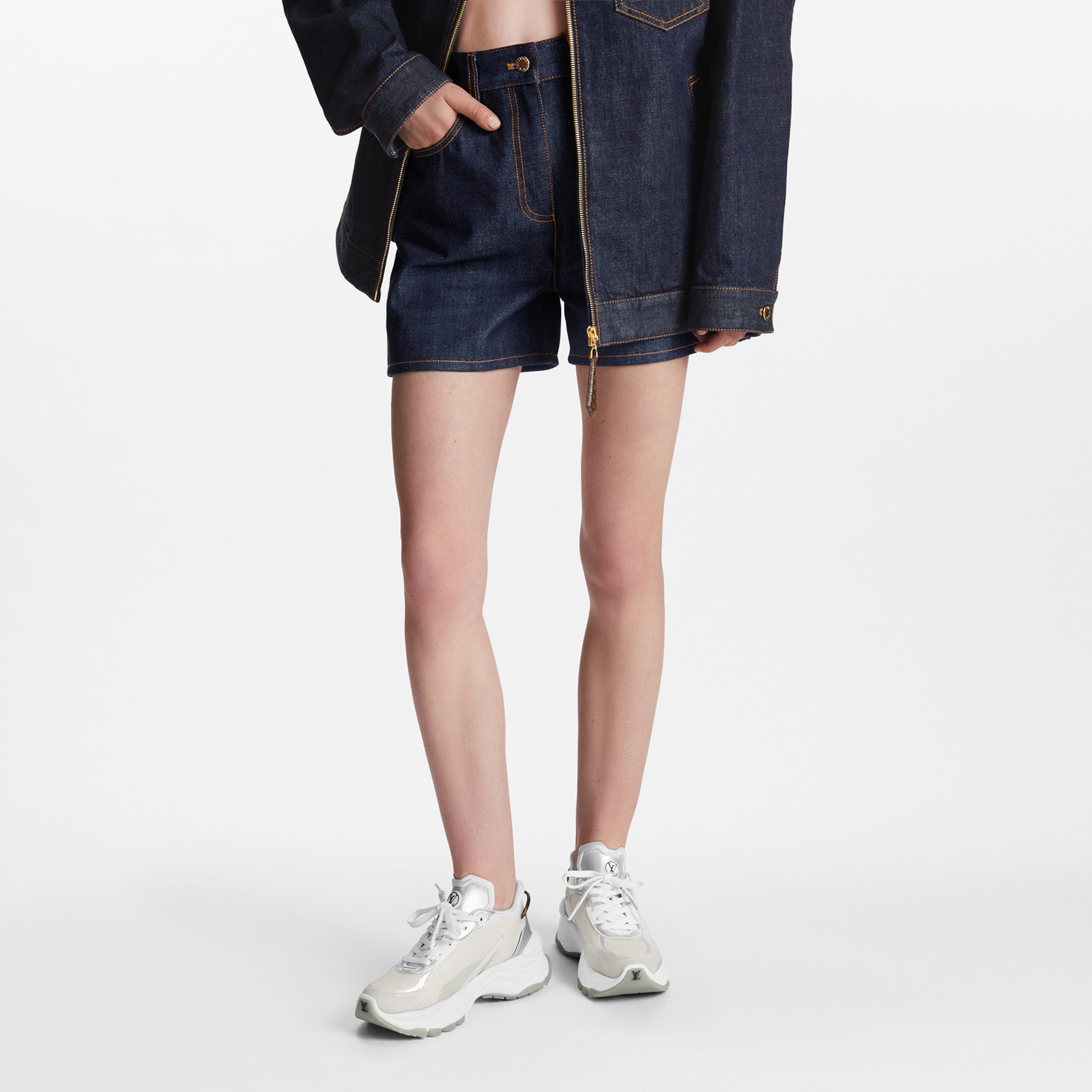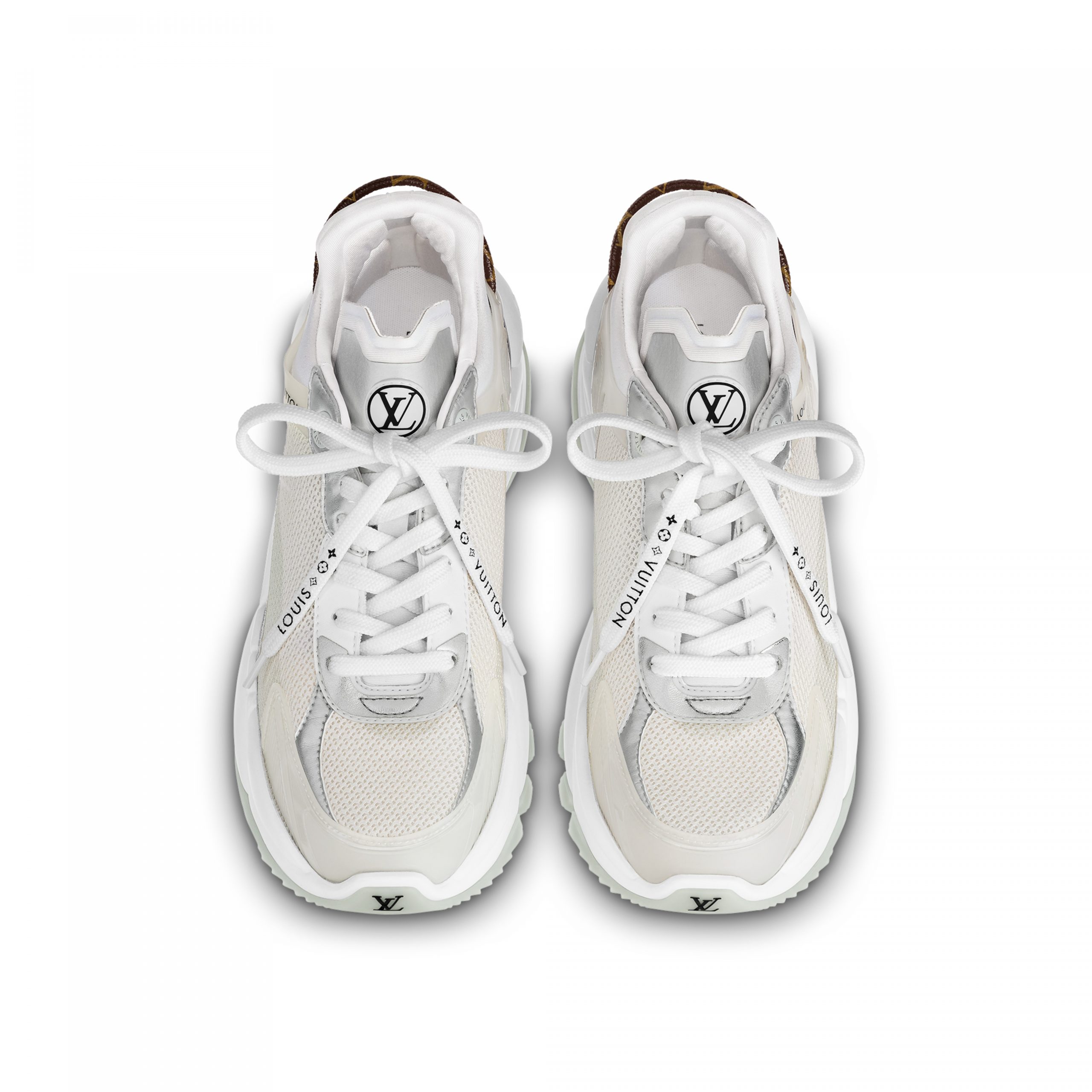 Inspired by racewear, the Run 55 sneaker is characterized by its lifted rubber outsole, which offers optimum comfort and bounce. On this version, which is crafted from a mix of materials including technical mesh, the sporty aesthetic is balanced by metallic gold leather trim. This model is notable for its many signature details, including a Monogram-canvas strap at the back.
