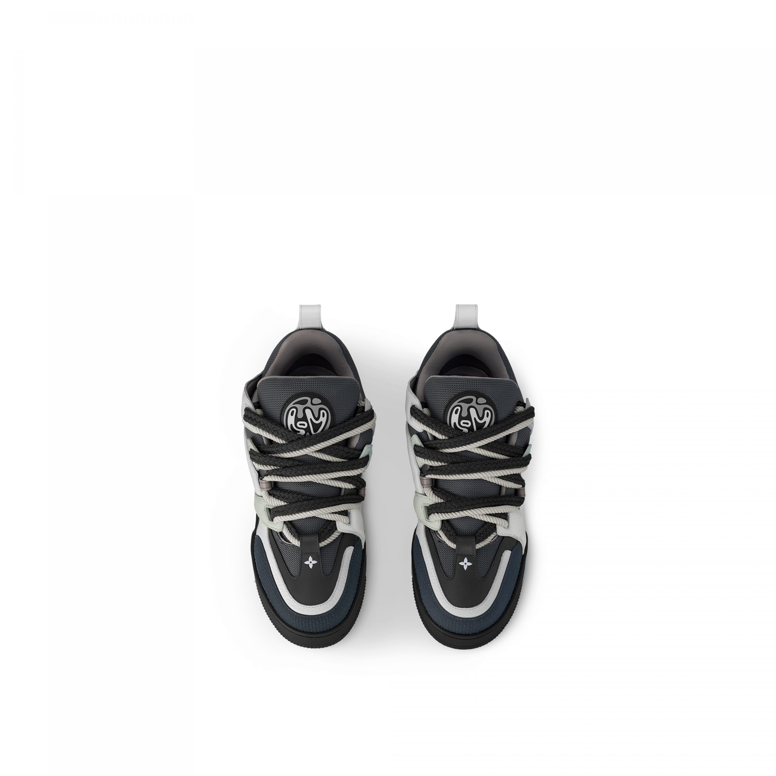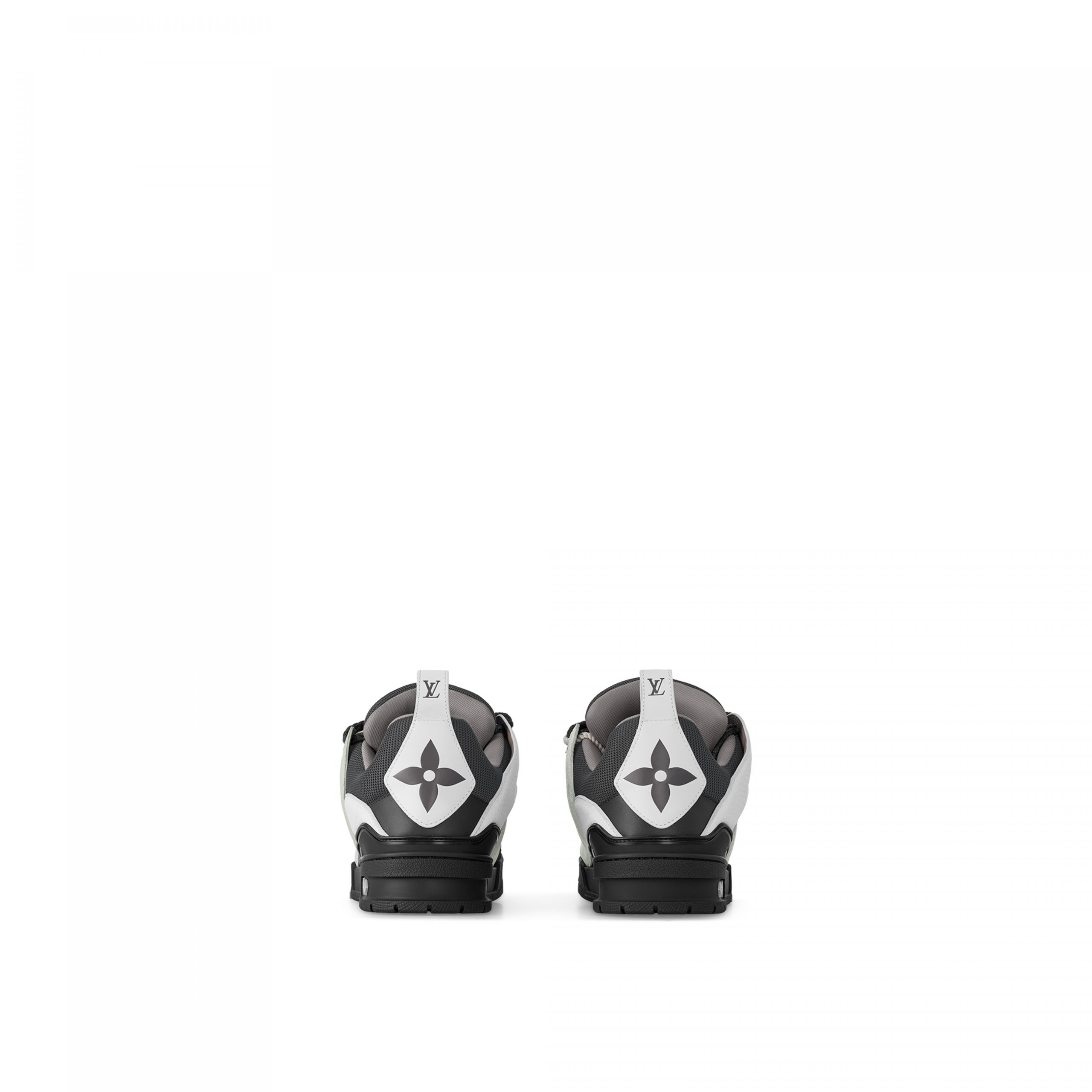 This exclusive edition of the LV Skate sneaker combines grained calf leather with technical mesh. On the side, the interlaced LV motif was inspired by Colm Dillane of KidSuper, who co-designed a part of the Louis Vuitton Fall-Winter 2023 show. Referencing skate shoes, this design is characterized by its padded collar and tongue with bicolor double laces and outsole.