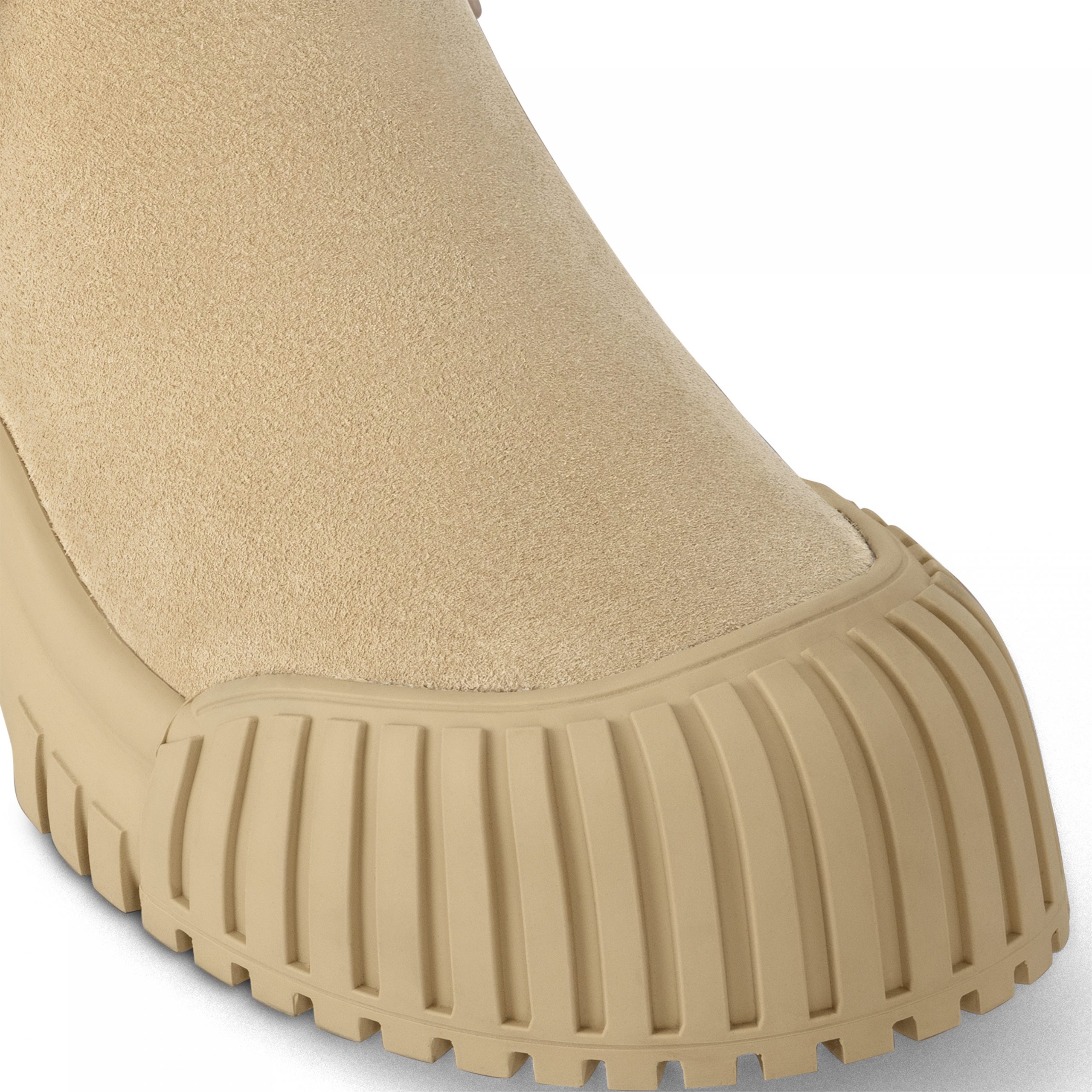 This wintry version of the Ruby flat ankle boot comes in suede calf leather with fluffy shearling trim. This model features distinctive elastic side panels inspired by Chelsea boots, while its chunky yet lightweight rubber outsole discreetly adds extra height. It is signed with an LV Circle logo on the front.