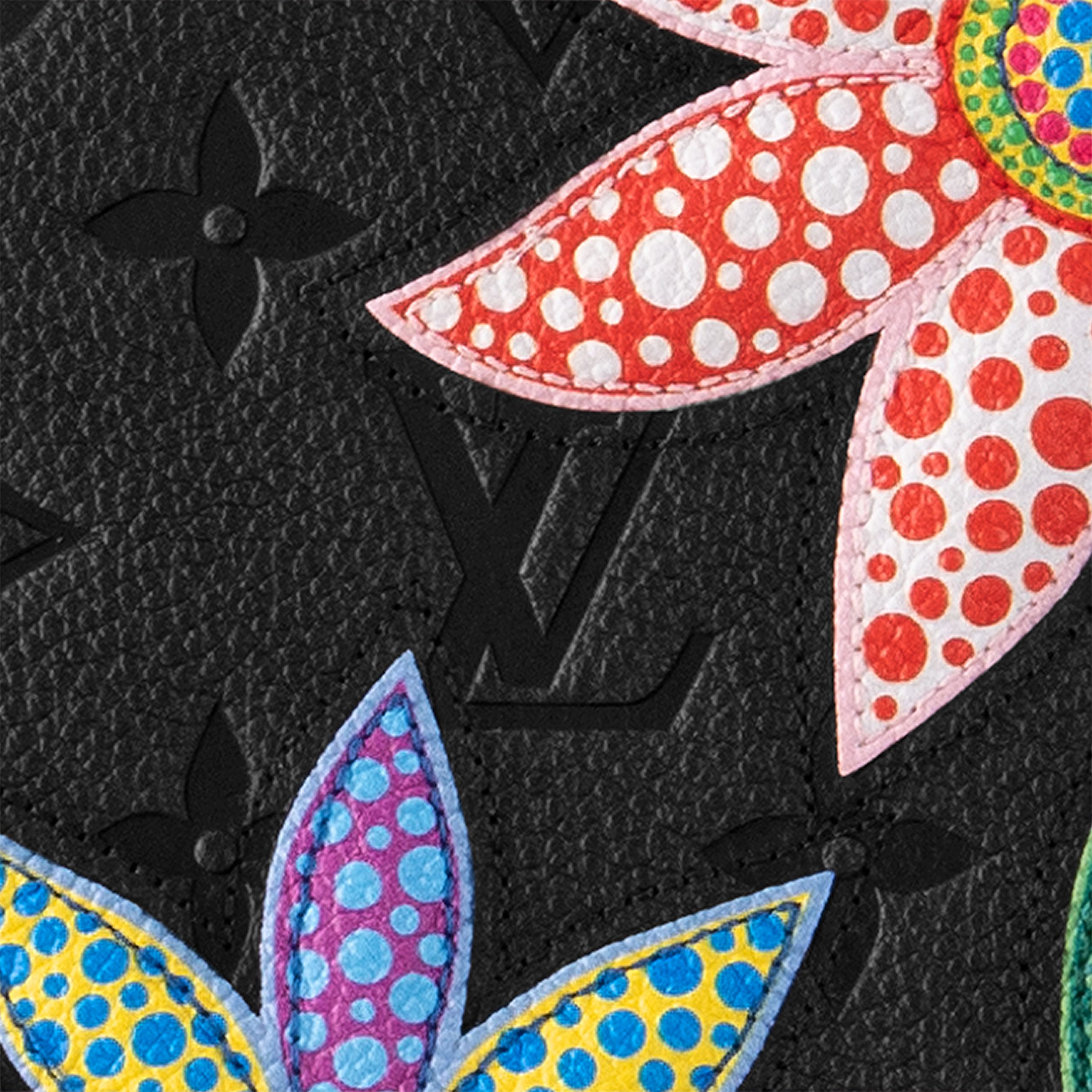 A standout of the Louis Vuitton x Yayoi Kusama collection, this version of the LVxYK OnTheGo MM features a delicate flower pattern inlaid on sumptuous black Monogram Empreinte cowhide. The renowned artist grew up in rural Japan, where her parents ran a plant nursery, and flowers have been a significant theme in her work throughout her career. A capacious, practical bag becomes a masterpiece of artistry and craftsmanship.