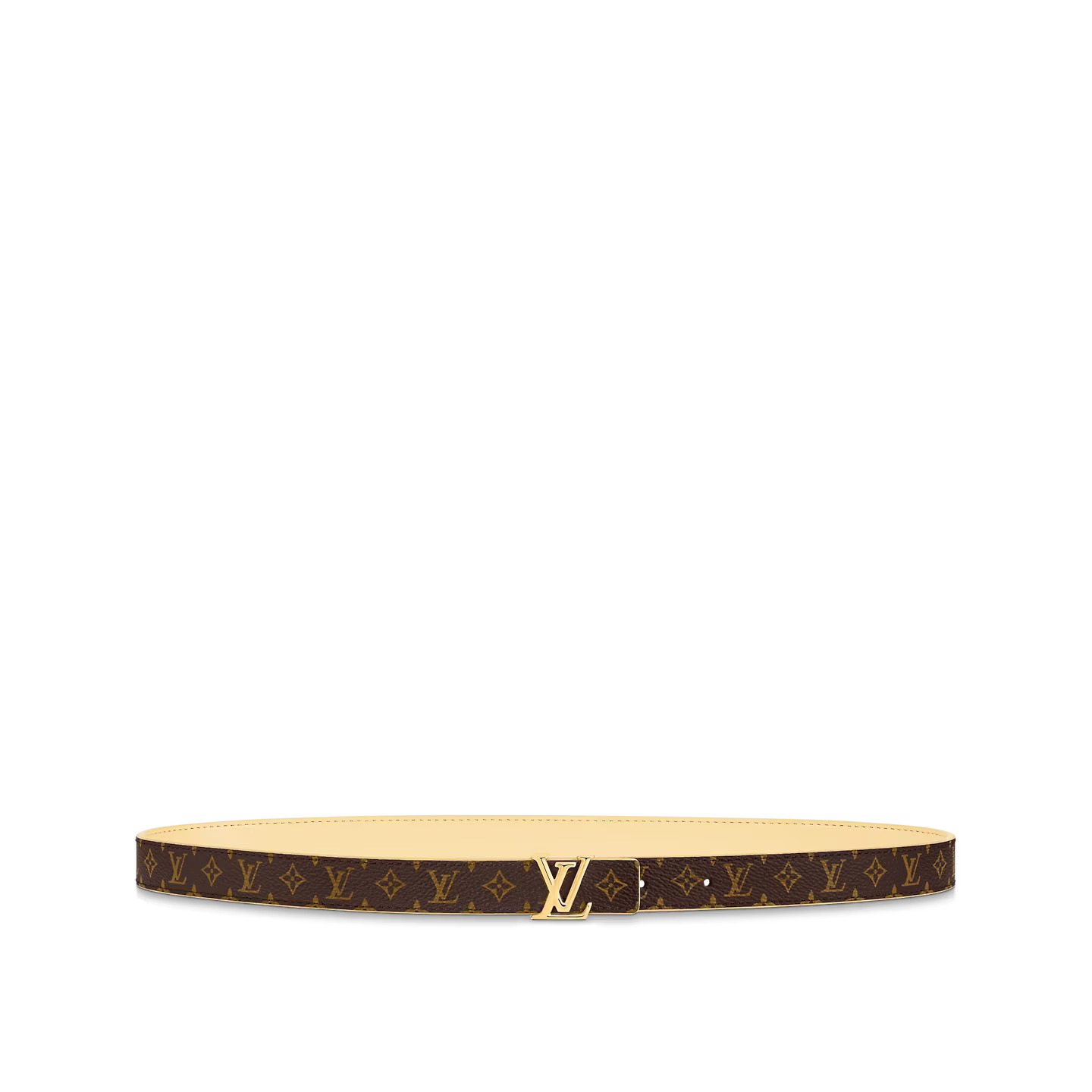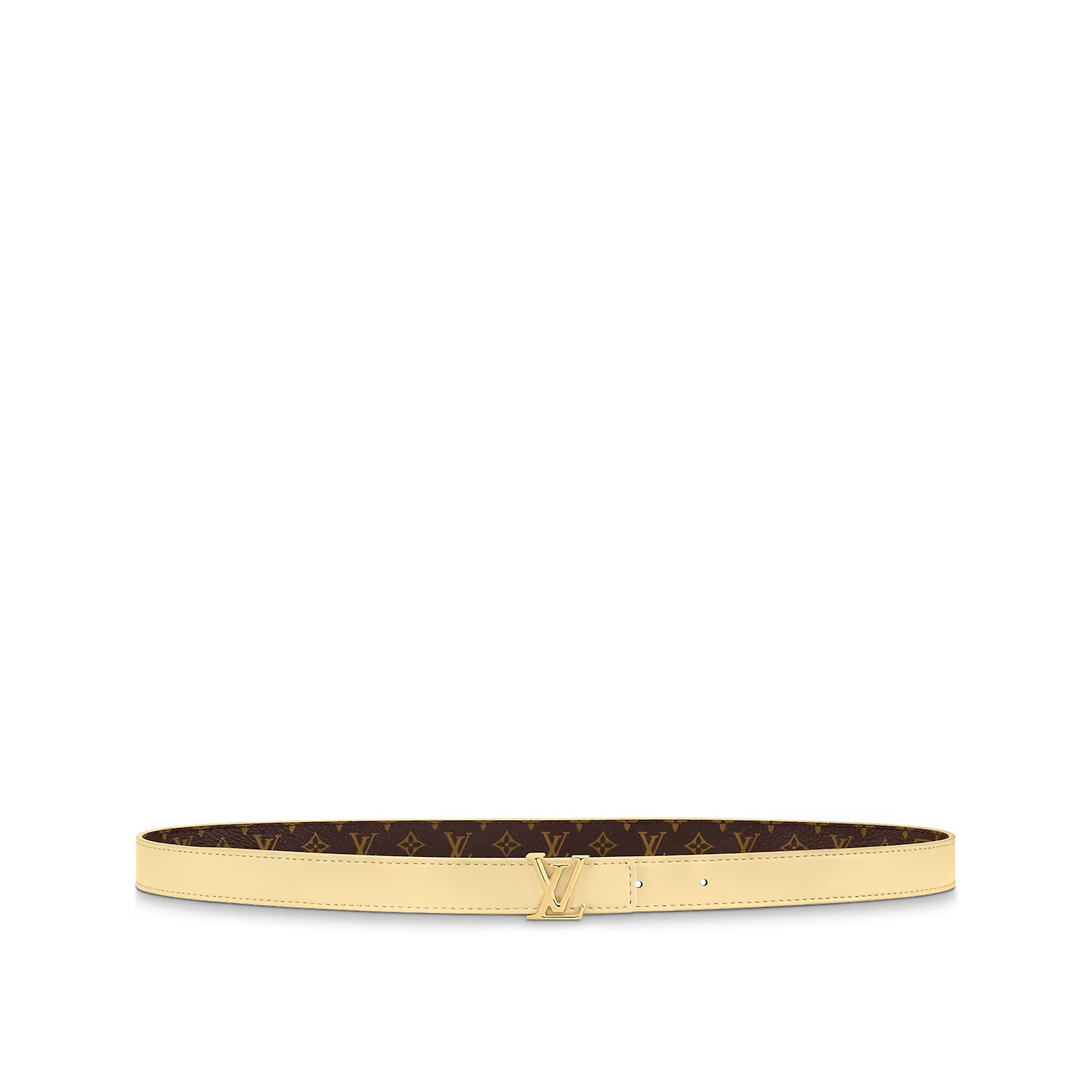 The LV Iconic epitomizes the trend for slim belts with everyday looks. Reversible, pairing Monogram with fine calfskin, it can be worn around the waist to accentuate the silhouette or over trousers for a more causal effect. And its vibrant color makes it the perfect companion to the plume yellow Alma BB bag.