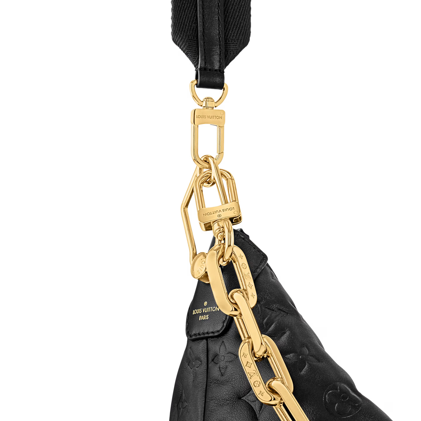 A statement addition to the Coussin line, this new Hobo model strikes the balance of fashionable and functional. Showcasing signature design details from the collection, it is crafted from smooth padded leather embossed with the House’s Monogram and has an iconic chunky chain accented with gold-toned hardware. The large removable textile strap offers multiple wearing options. This versatile piece also includes a removable zipped pouch and is sized to store a laptop.