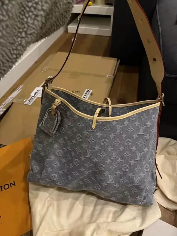 The LV denim shoulder bag — I’m absolutely obsessed with this color combo! It’s just so my vibe!