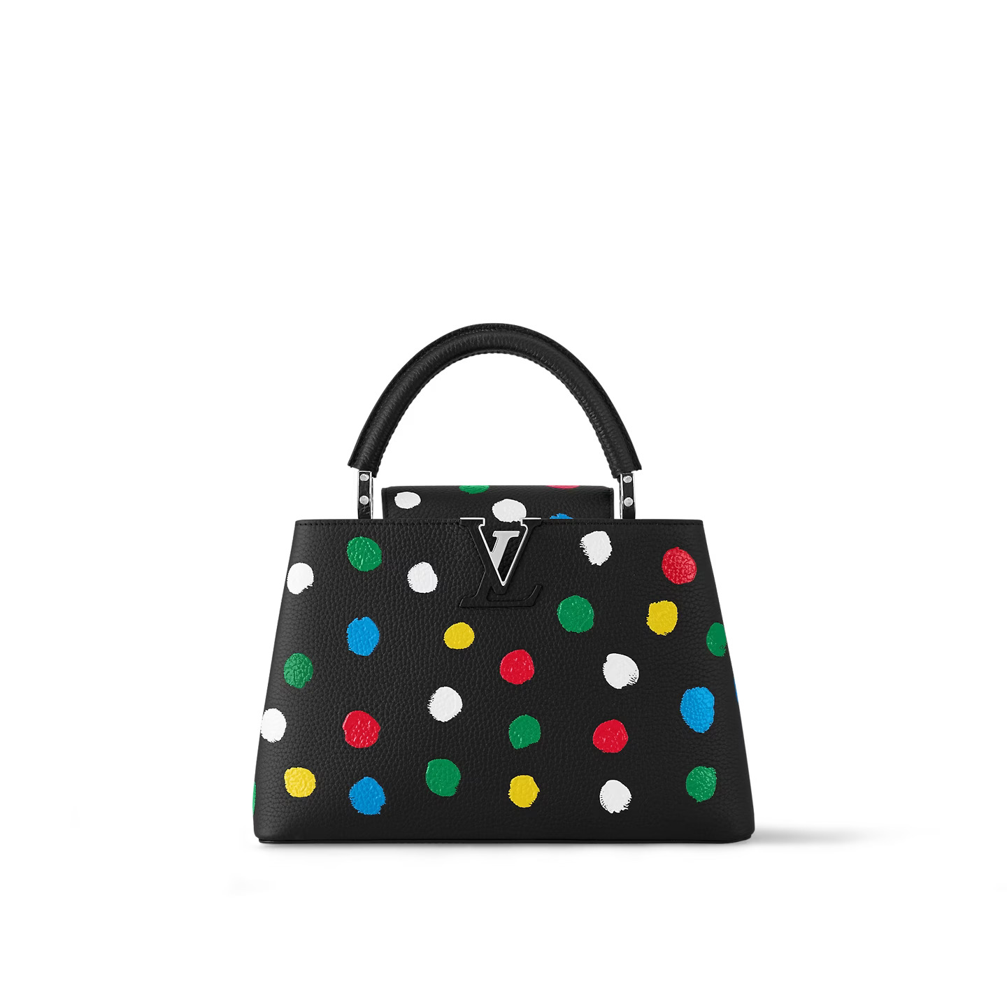 The LVxYK Capucines MM is an arty update of a classic bag. Part of the new Louis Vuitton x Yayoi Kusama collection, it features the renowned Japanese artist’s signature dots in a rainbow of colors, screen-printed on supple black Taurillon leather. And inside it has a zipped pocket with a pull shaped like a pumpkin – another of Kusama’s emblematic themes.