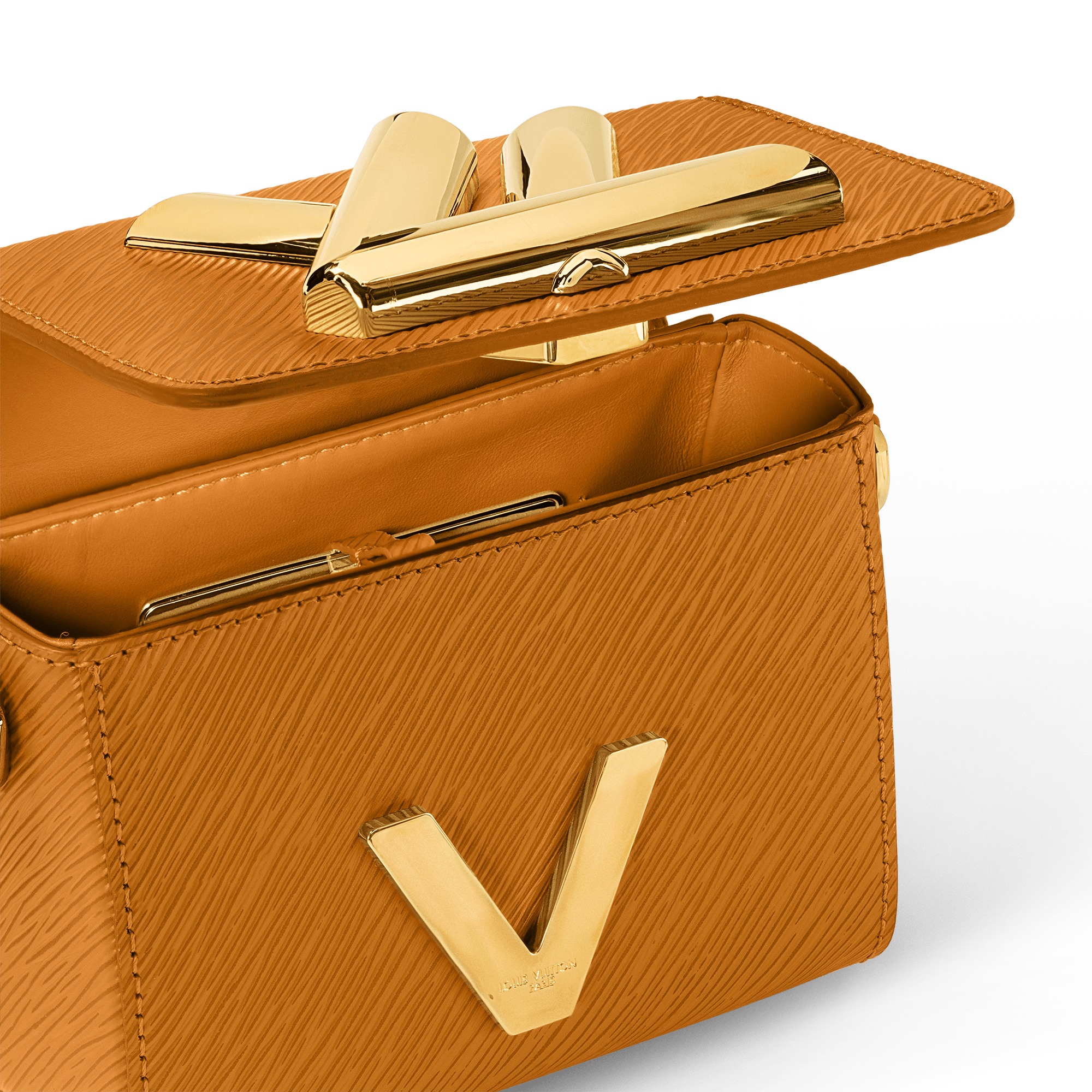 - Flap closure with decorative LV Twist lock (not functional)