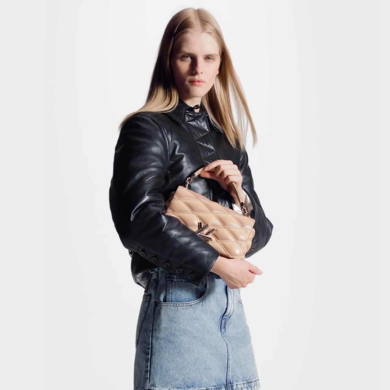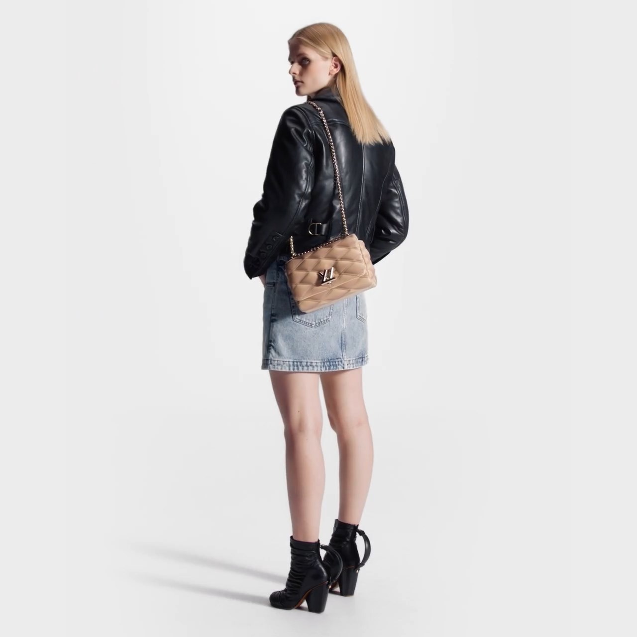Nicolas Ghesquière continues to reinterpret the malletage quilting originally found inside the House’s trunks, embellishing the lambskin of this GO-14 MM handbag with the iconic crisscrossing pattern. A sprayed effect gives a futuristic allure to the bag, emphasizing the avant-gardist mindset that informs Louis Vuitton’s design season after season.The top handle and adjustable chain – both detachable – enable carry options.