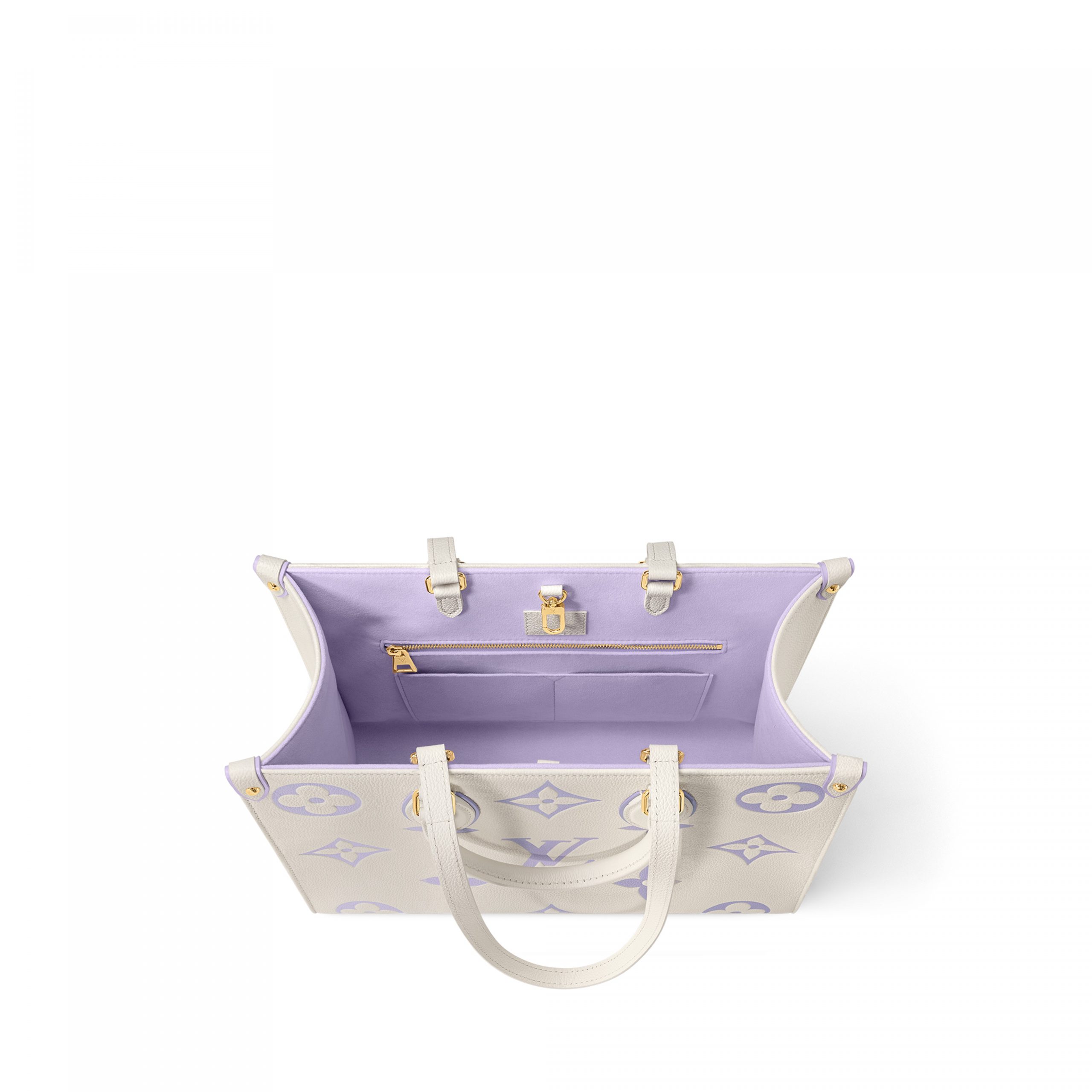 The subdued pastel colorway of this OnTheGo MM small tote in Monogram Empreinte leather brings a fresh feel to this practical bag. Large enough to carry a 13-inch laptop, it features two sets of handles, long and short, for hand and shoulder carry. Touches of pastel around the handle mounts and corner tabs complete the picture.