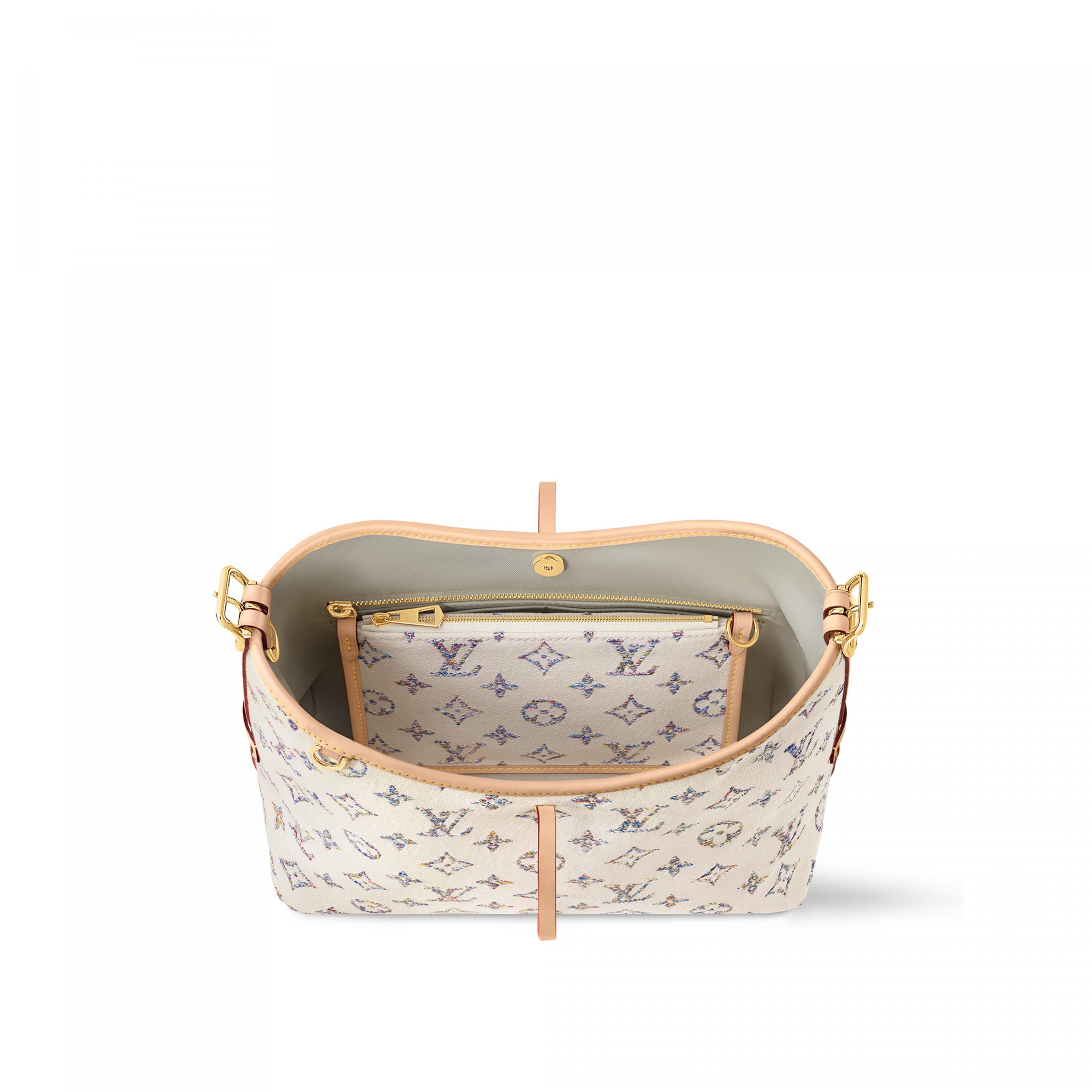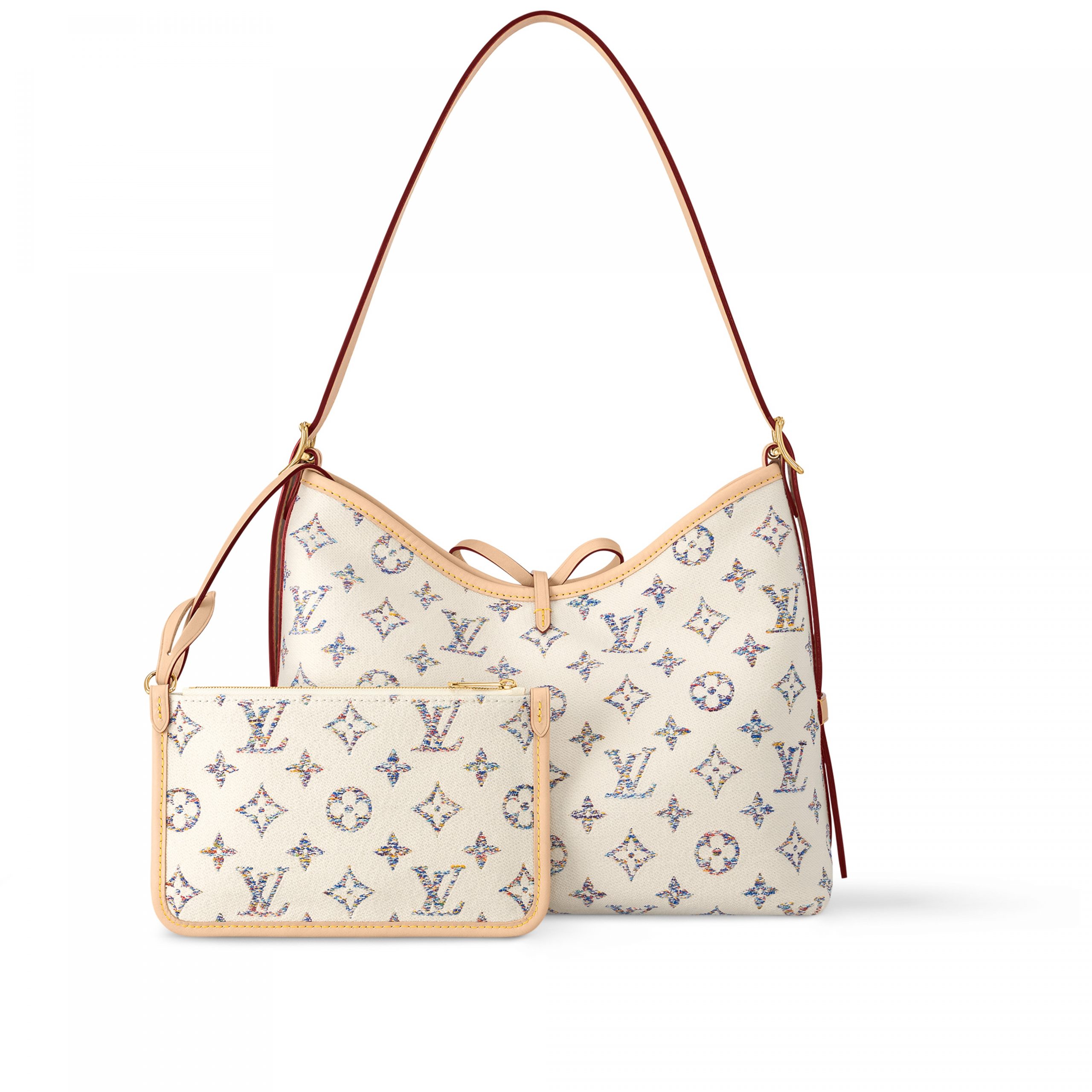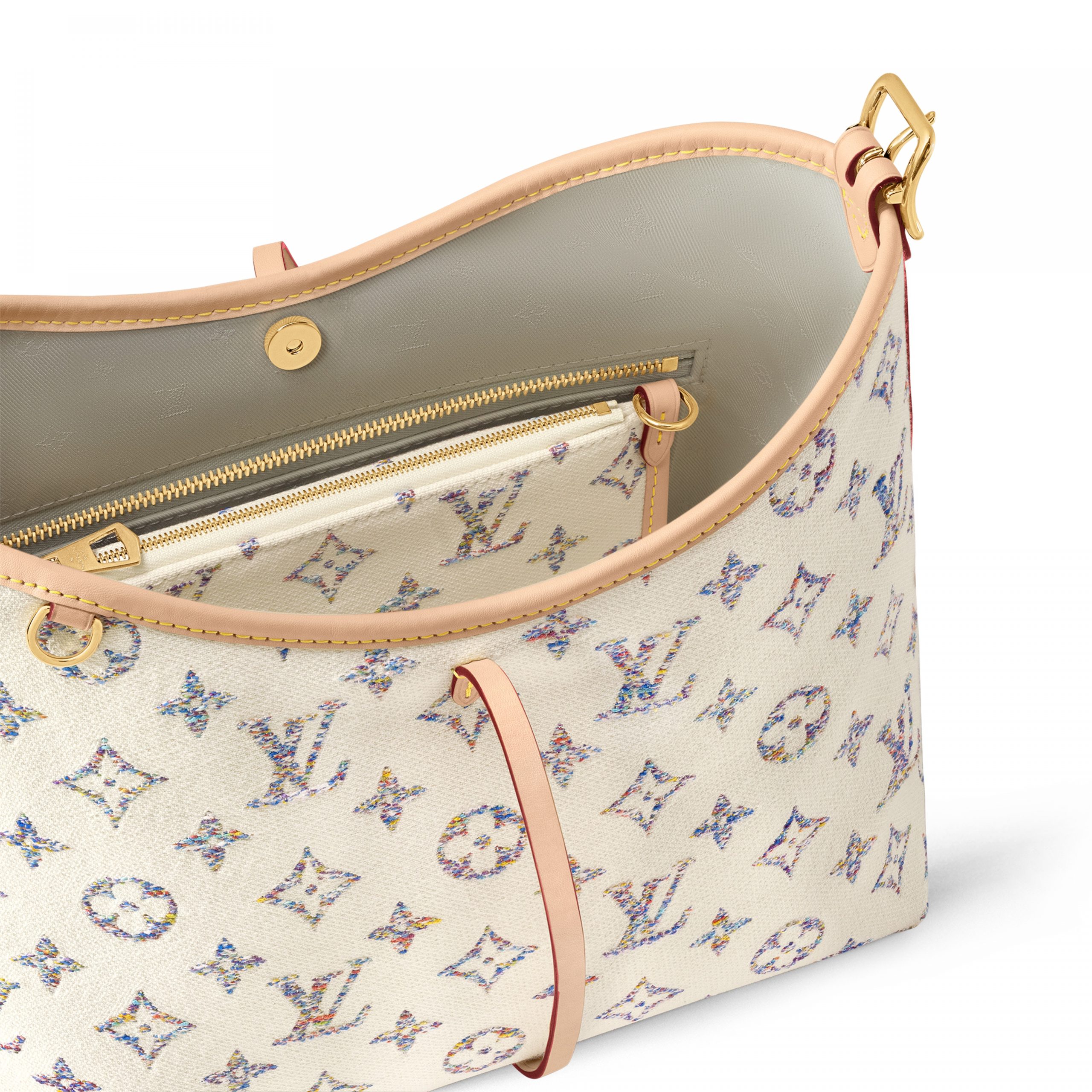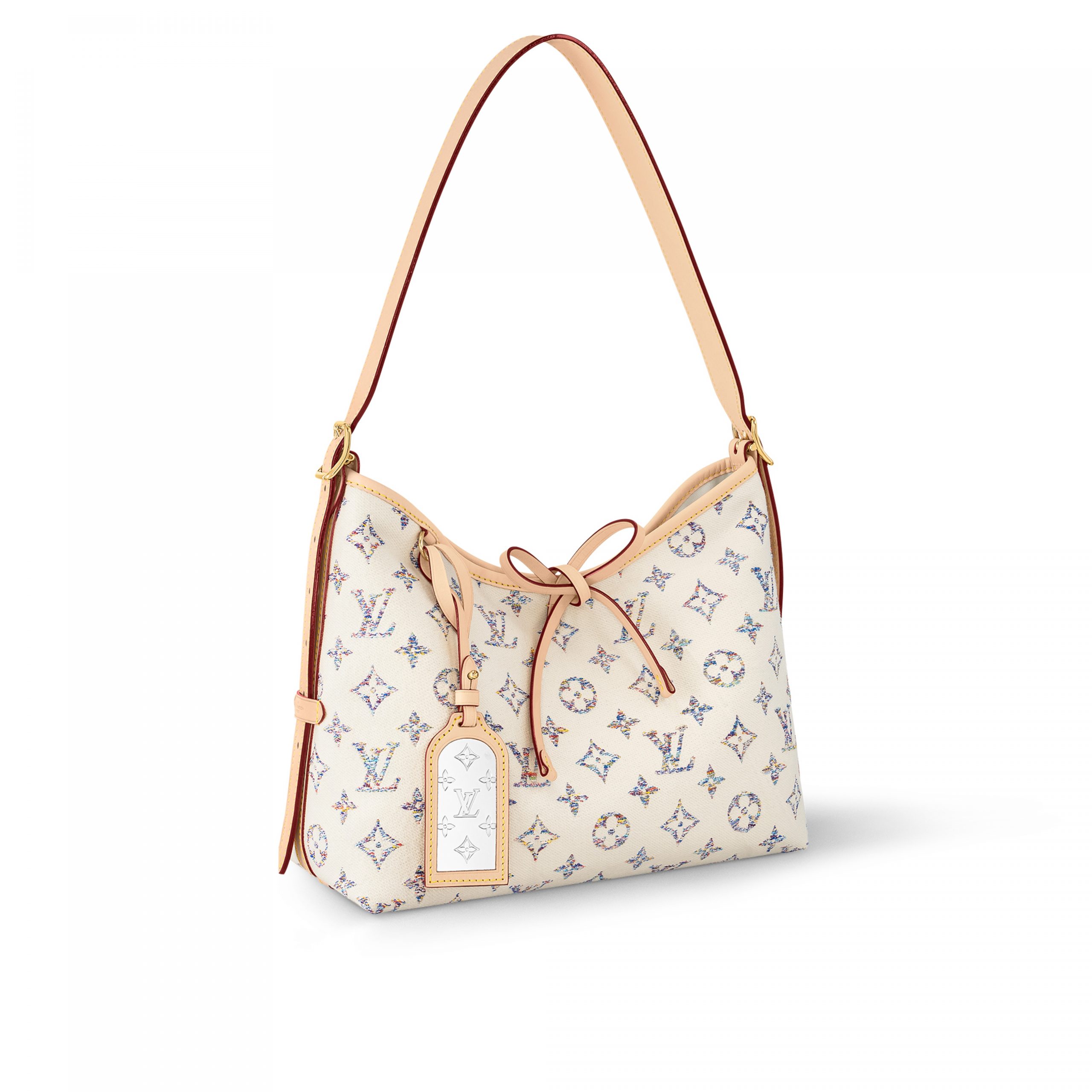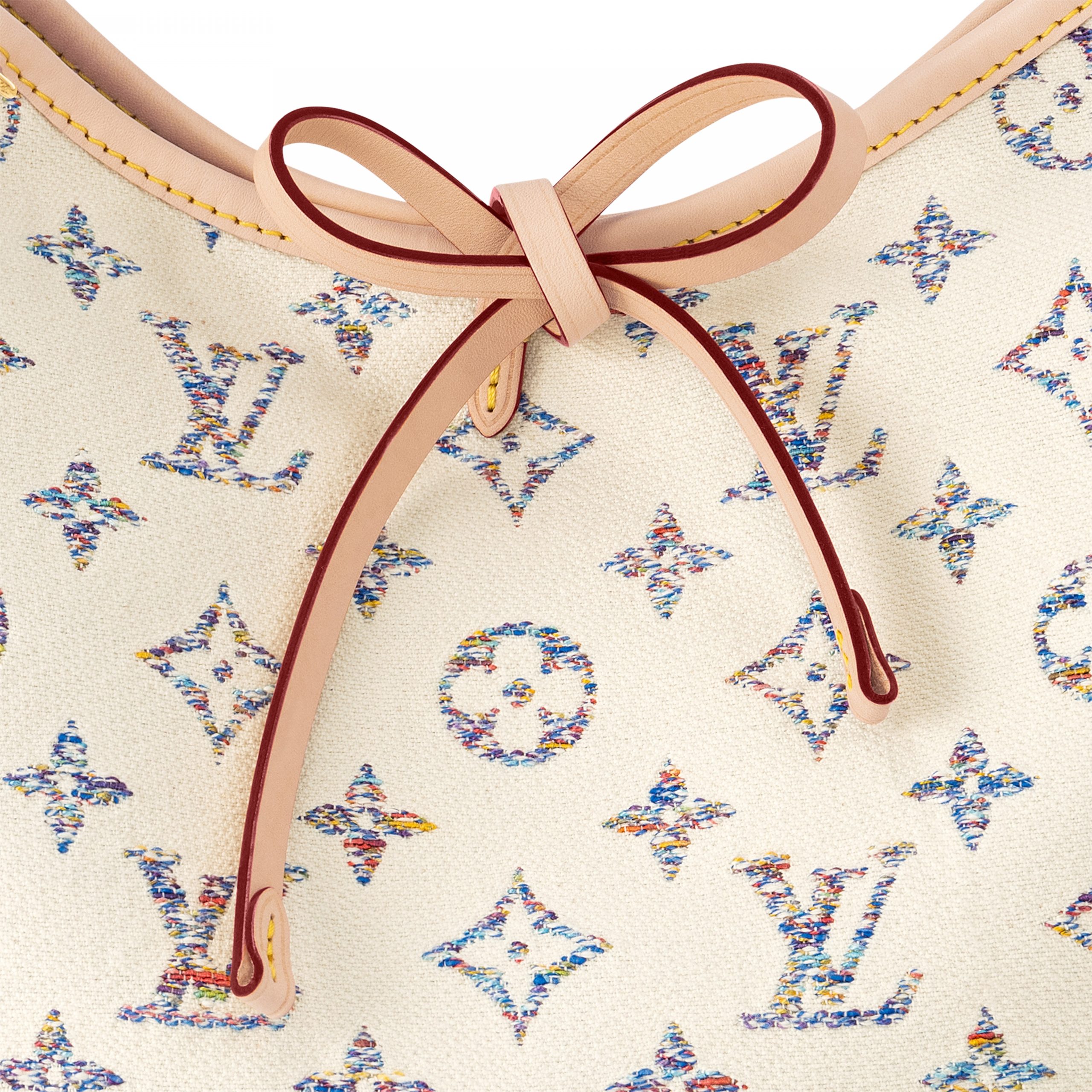 Part of the Nautical capsule, this CarryAll PM is made from Monogram jacquard with natural cowhide-leather trim. The motif was created by weaving together 66 multicolored threads to create a Monogram with a subtle gradient of colors. Adding a luminous accent, this versatile city bag comes with a laser-engraved mirror charm – ideal for beauty touch-ups.