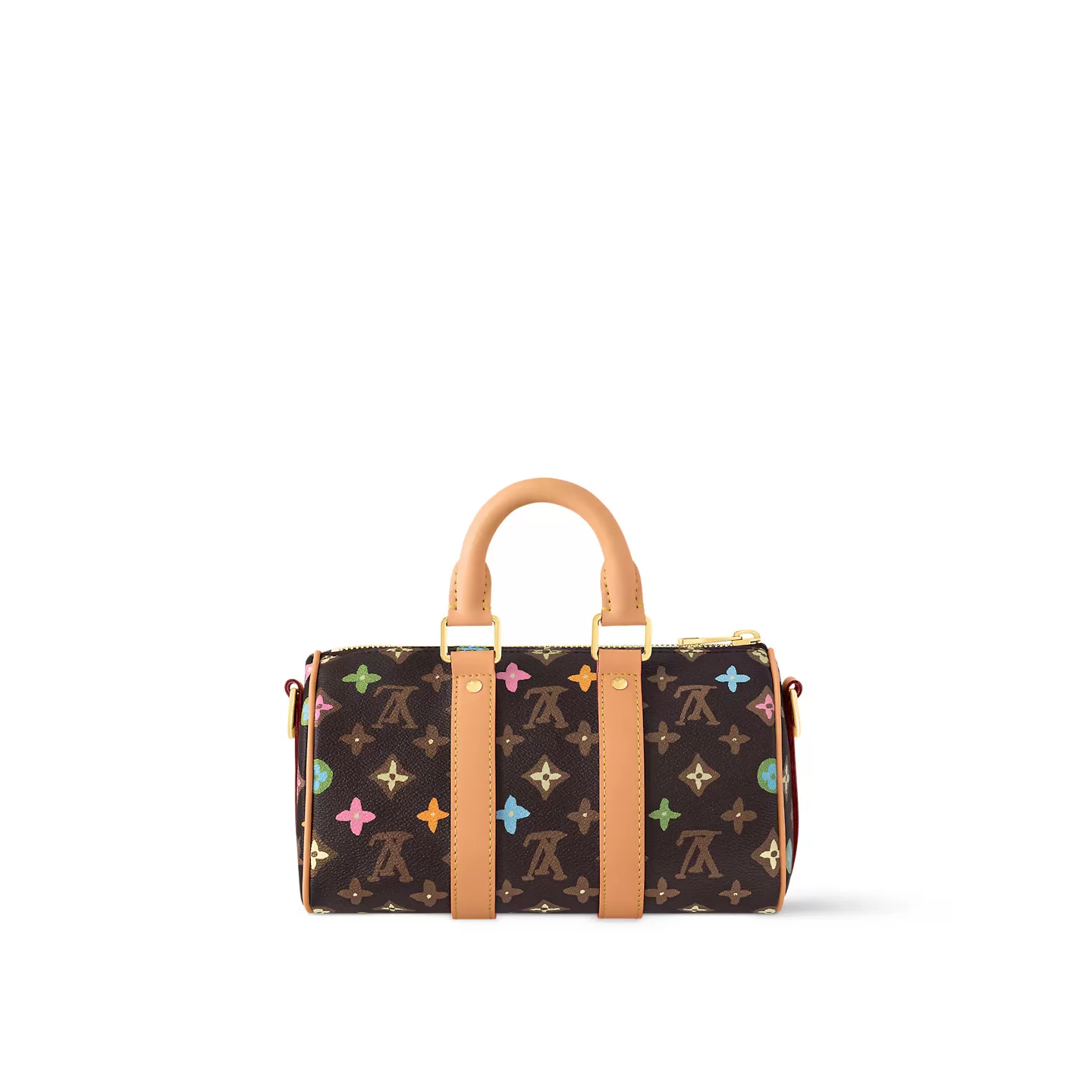 Made from Monogram Craggy canvas, this Keepall Bandoulière 25 features a colorful hand-drawn Monogram motif, livened up with daisies and dogs. The natural-leather trim, including on the top handles, lateral bands, and removable name tag, completes the design. There’s a removable and adjustable strap for shoulder and cross-body carry.