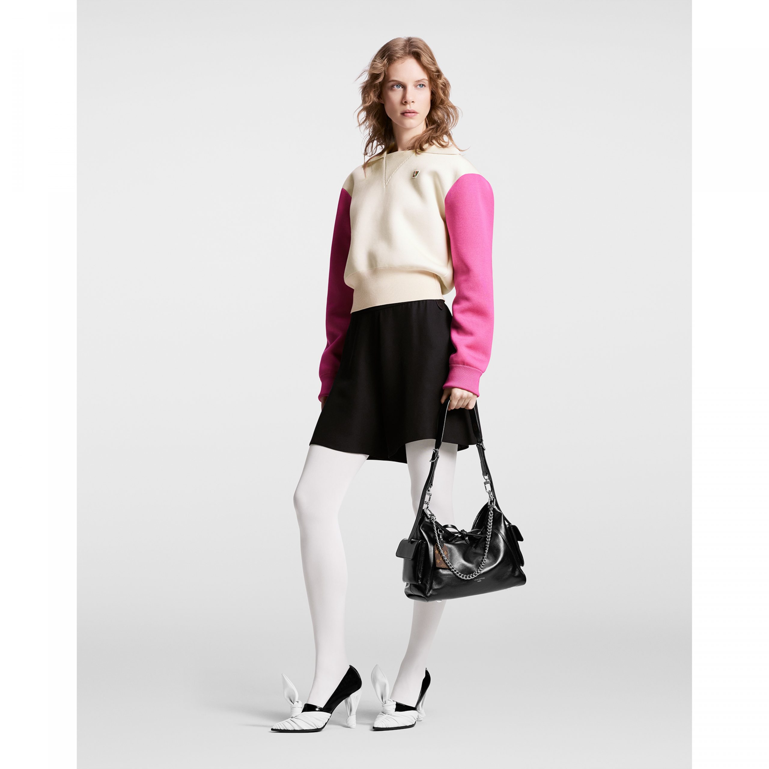 With its dark allure and slouchy silhouette, the CarryAll Cargo PM handbag is crafted from ultra-soft lambskin with a cool, slightly “rumpled” aspect and is accented with polished palladium-finish hardware. This day-to-evening piece offers great styling potential, thanks to a removable strap and a chic, detachable chain.