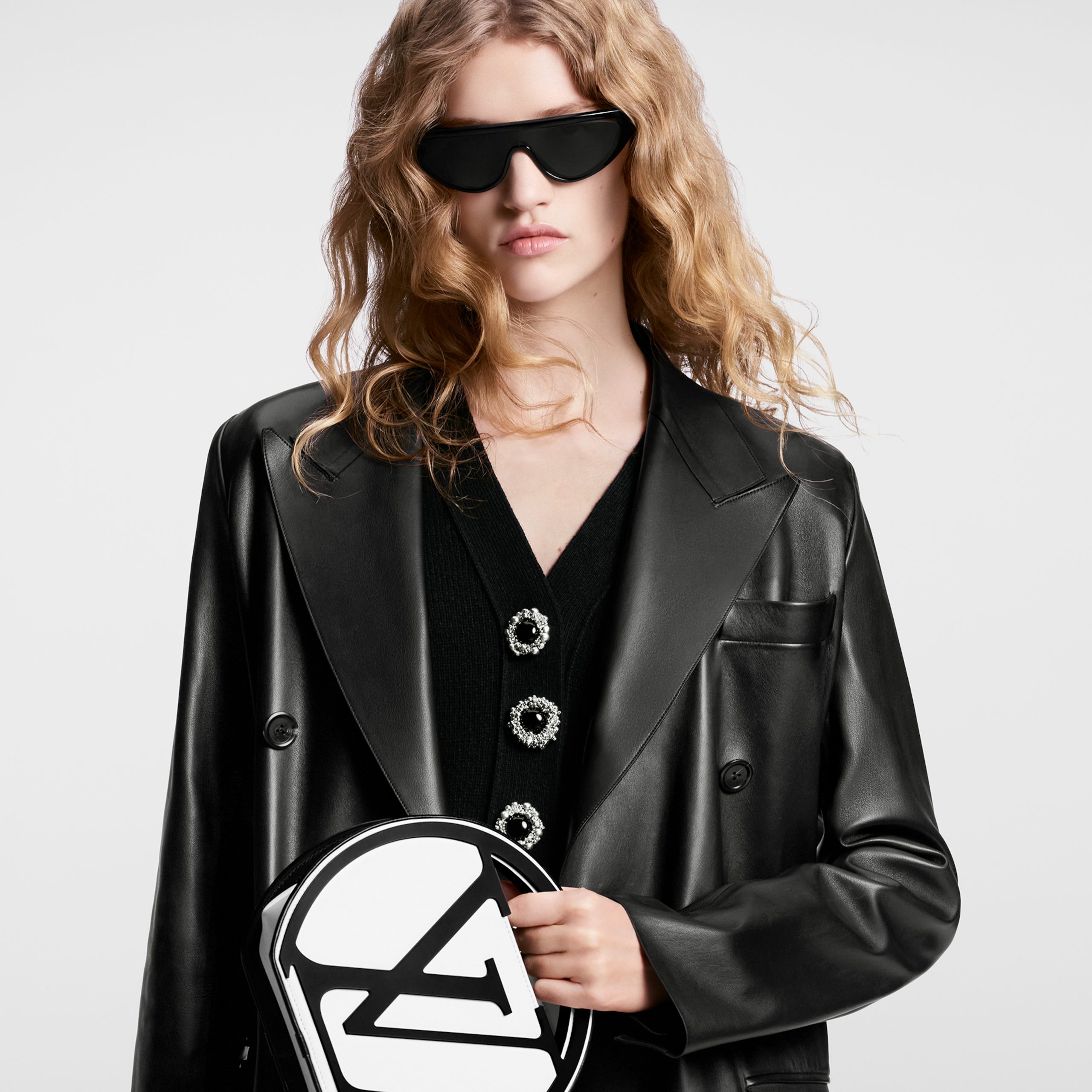 Part of the Spring-Summer 2024 Collection, the Around Me in white and black leather is a compact bag inspired by the House’s LV Circle signature. The design features the LV Initials inside a perfect circle. The rounded top handles are seamlessly integrated, completing the circle. There’s also a removable and adjustable leather shoulder strap.