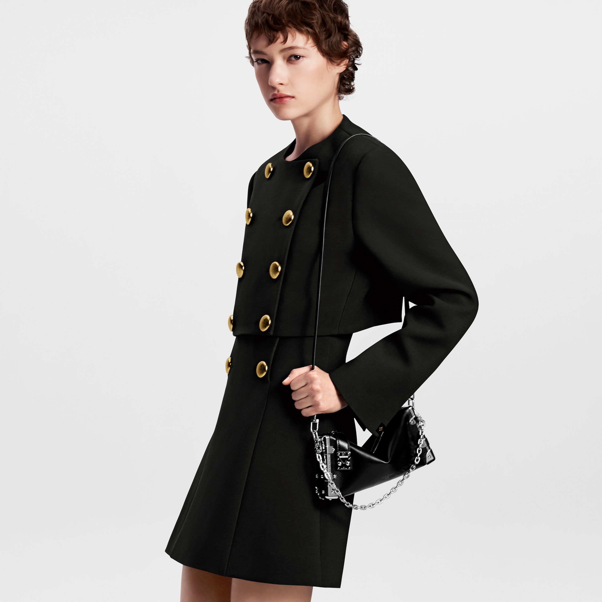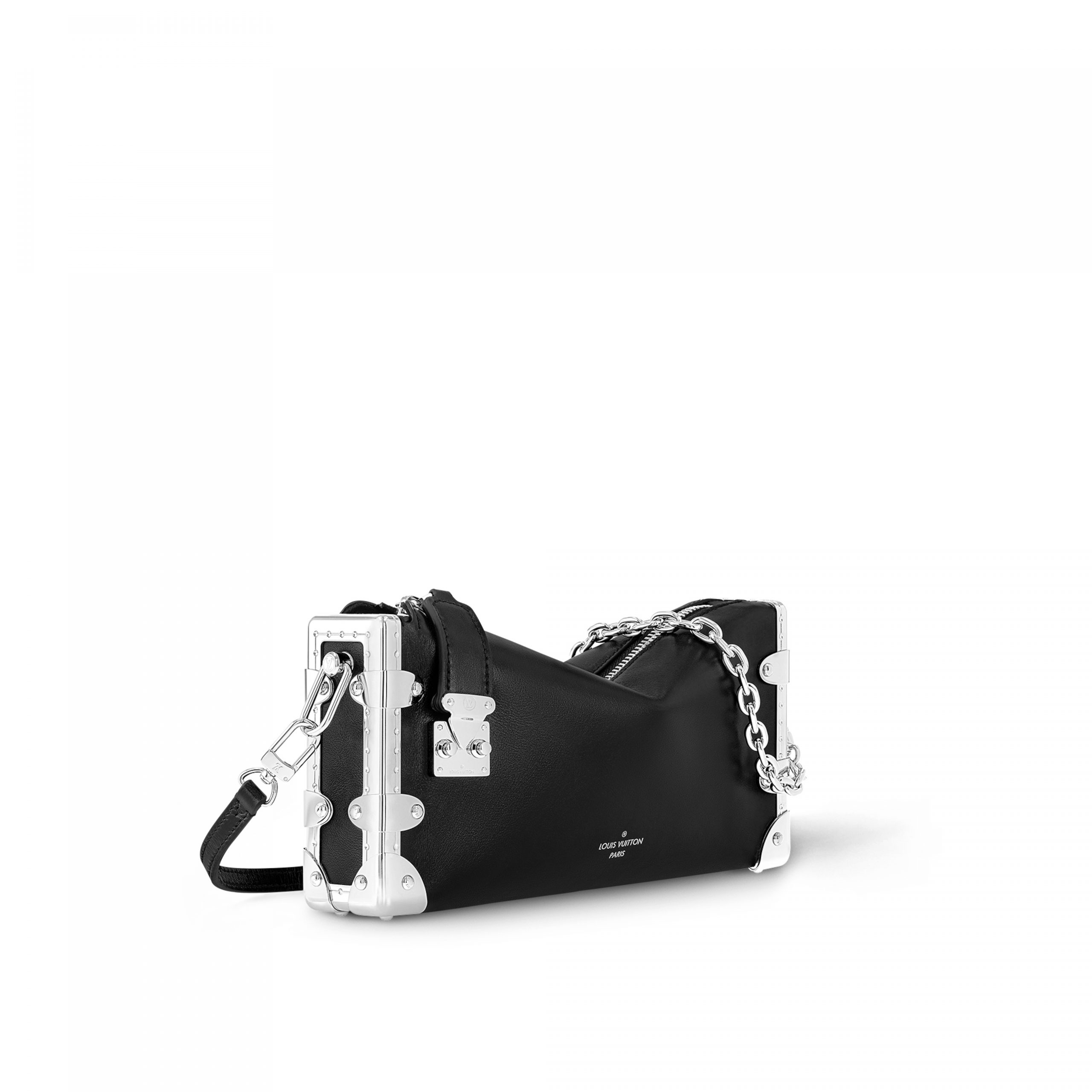 The Slim trunk is a fashion-forward piece that takes its design cues from Louis Vuitton’s historic trunks. Crafted from extremely supple calfskin, it is embellished with a riveted frame and S-lock in silver-tone metal, giving it a rock’n’roll vibe. This model offers different carry options thanks to its removable chain and removable, adjustable leather strap.