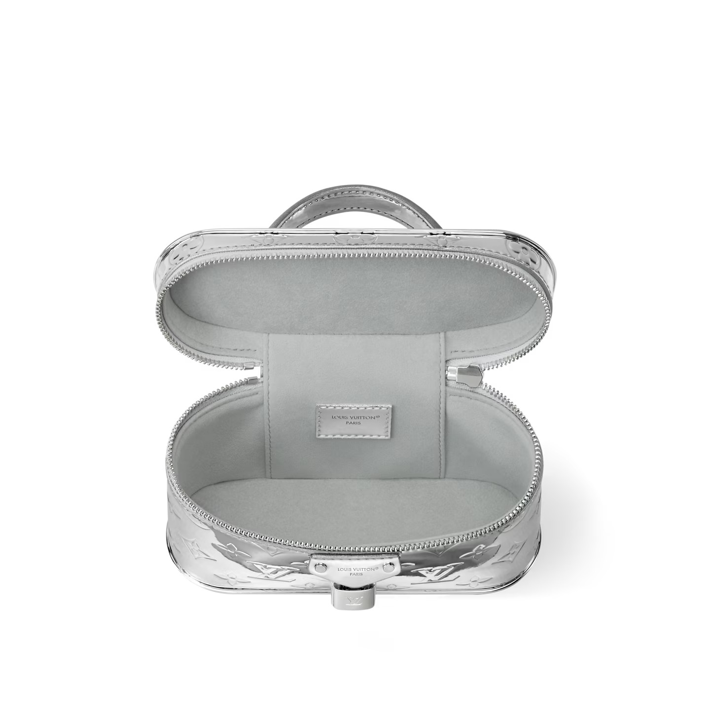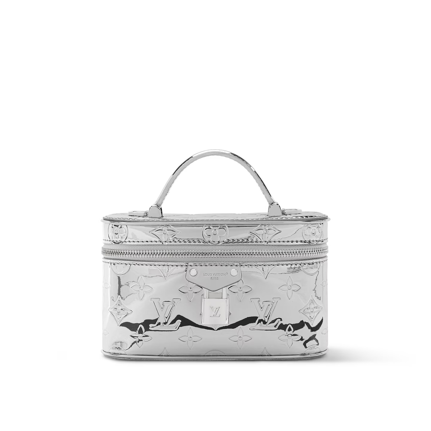 Inspired by traditional Louis Vuitton cases, this Vanity Chain Pouch embodies the House’s spirit of travel. Part of the LV Ski collection, it is crafted from Monogram Miroir canvas in a chic silver palette and features a matching signature LV-engraved padlock. The functional design includes a removable strap and chain, and is sized to fit essential items, such as a small coin purse and sunglasses.