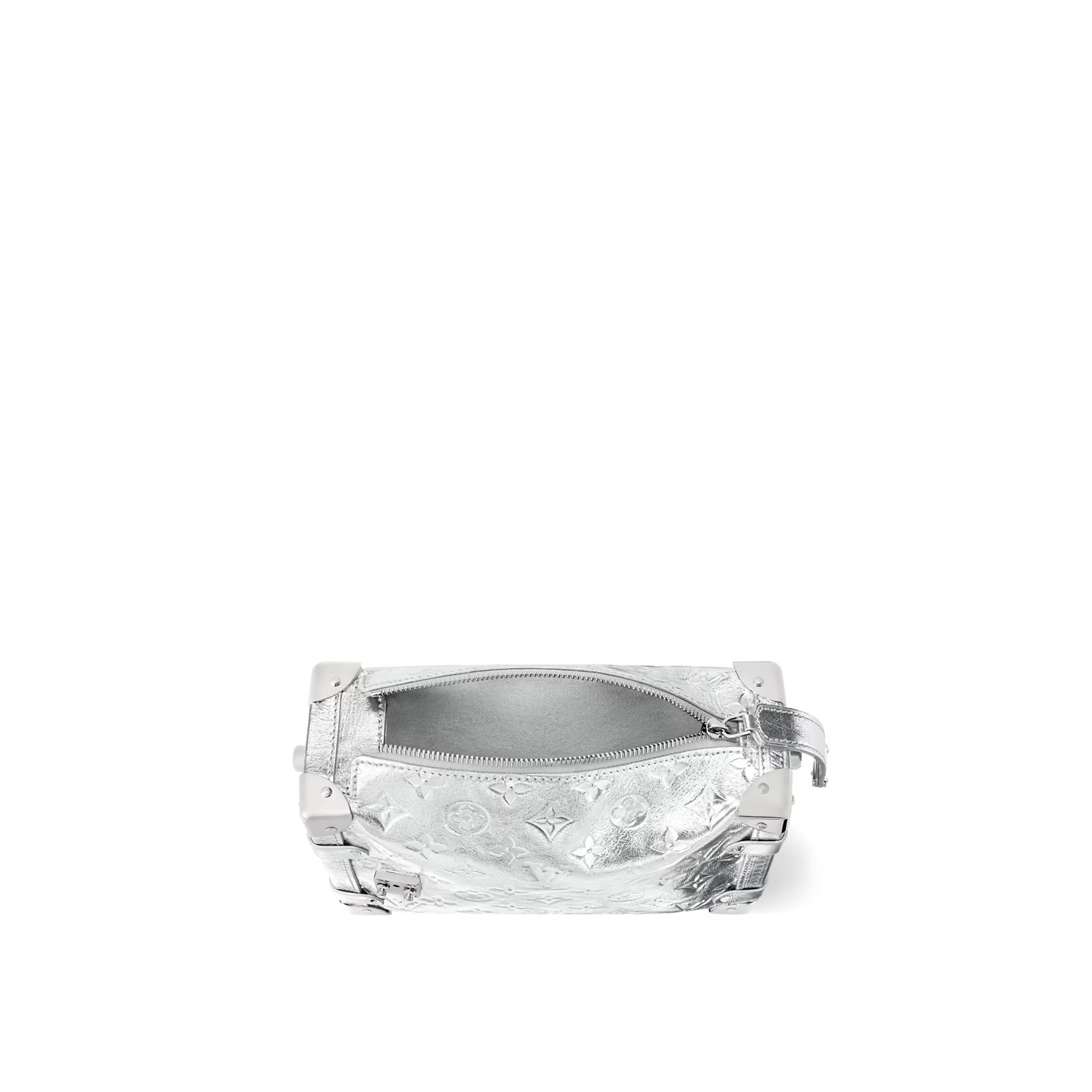 An elegant après-ski option, this Monogram Miroir Side Trunk MM makes a fashion statement with its light-catching finish. It is crafted from leather in a bold Silver colorway that adds a futuristic feel, and is adorned with a signature S-lock in a tonal finish. Echoing the original design, this seasonal edition includes metallic corners, paying tribute to the House’s luggage-making heritage. A day-to-evening bag that transitions effortlessly from winter outings to sophisticated soirées.
