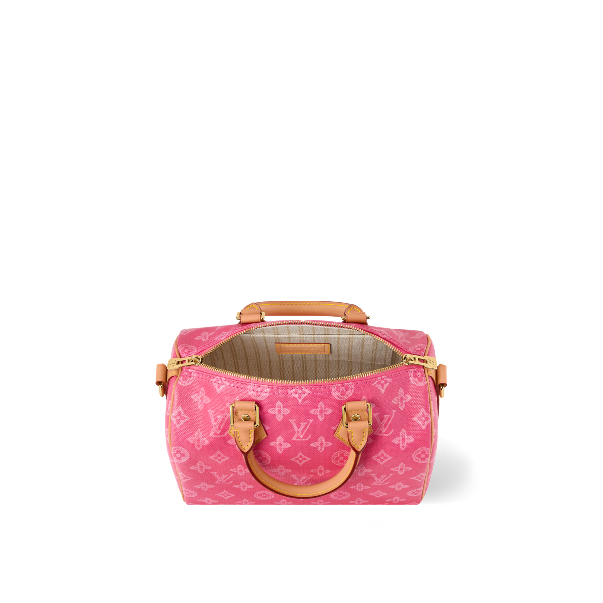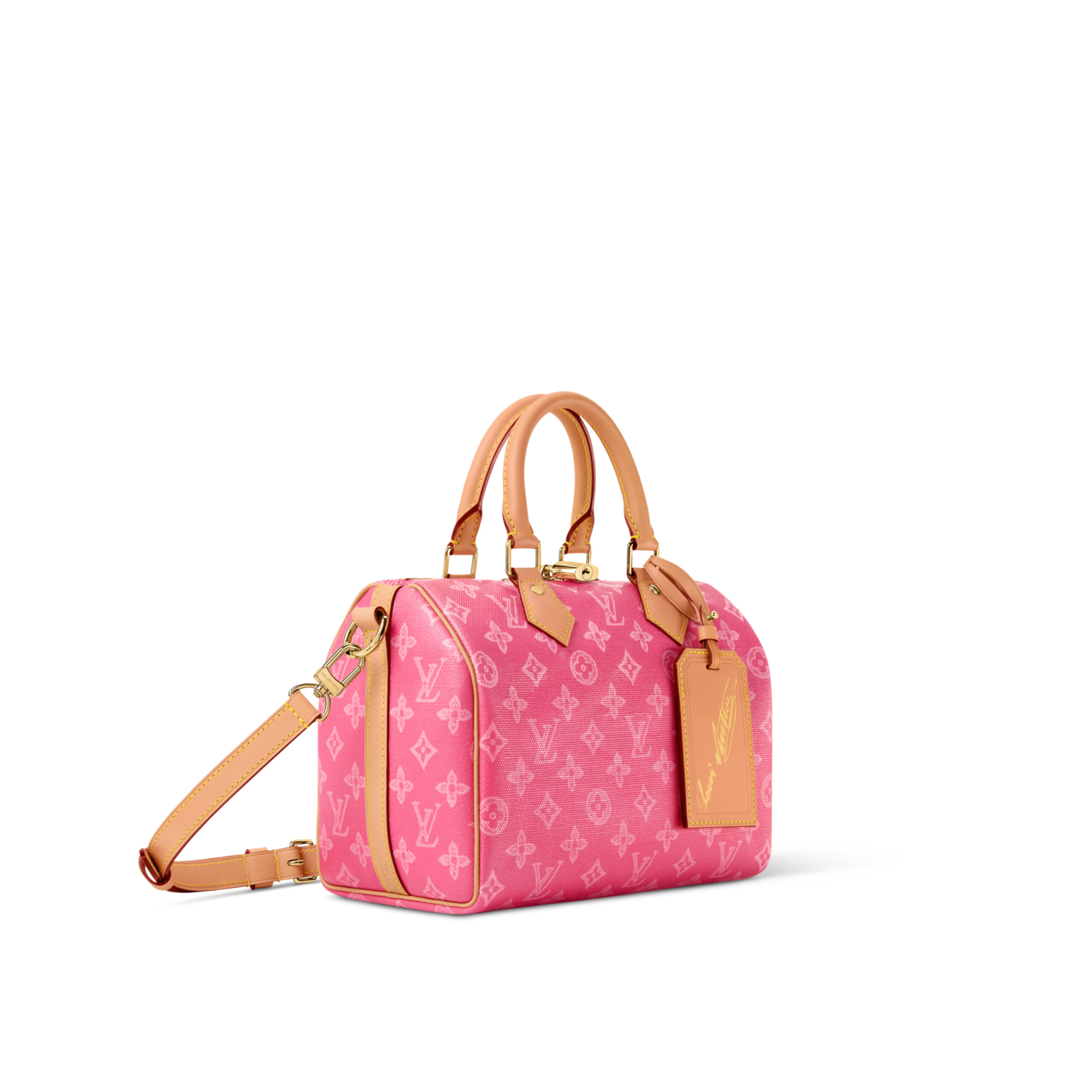 The Speedy Bandoulière 25 is reimagined in Monogram Origine canvas – a vintage-inspired update on the iconic Louis Vuitton pattern, which celebrates its 130th anniversary in 2026. This edition is offered in a vibrant Pink hue, trimmed with a smooth cowhide strap and celebratory address tag. The compact style is perfect for everyday, and includes a flat pocket inside for smaller items.