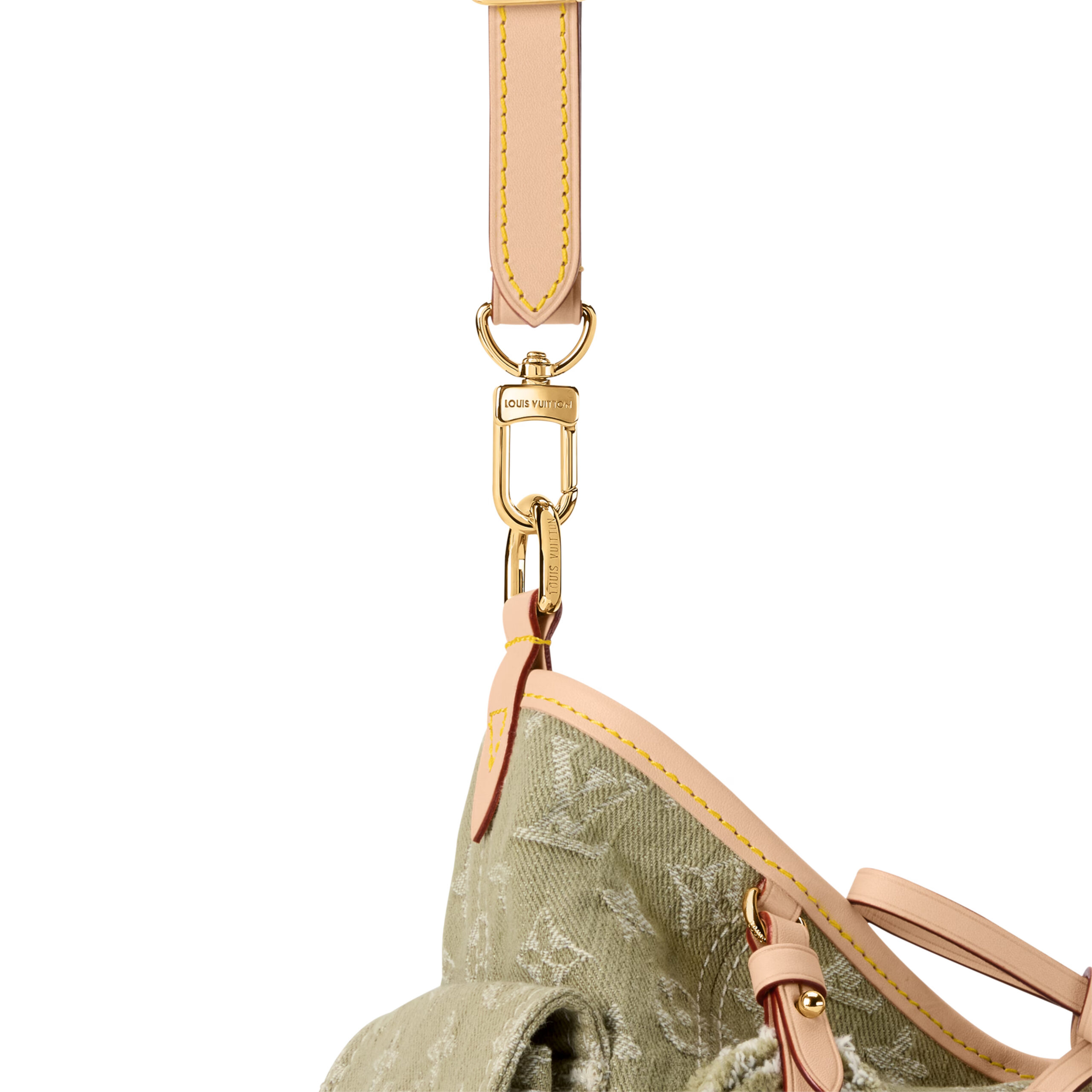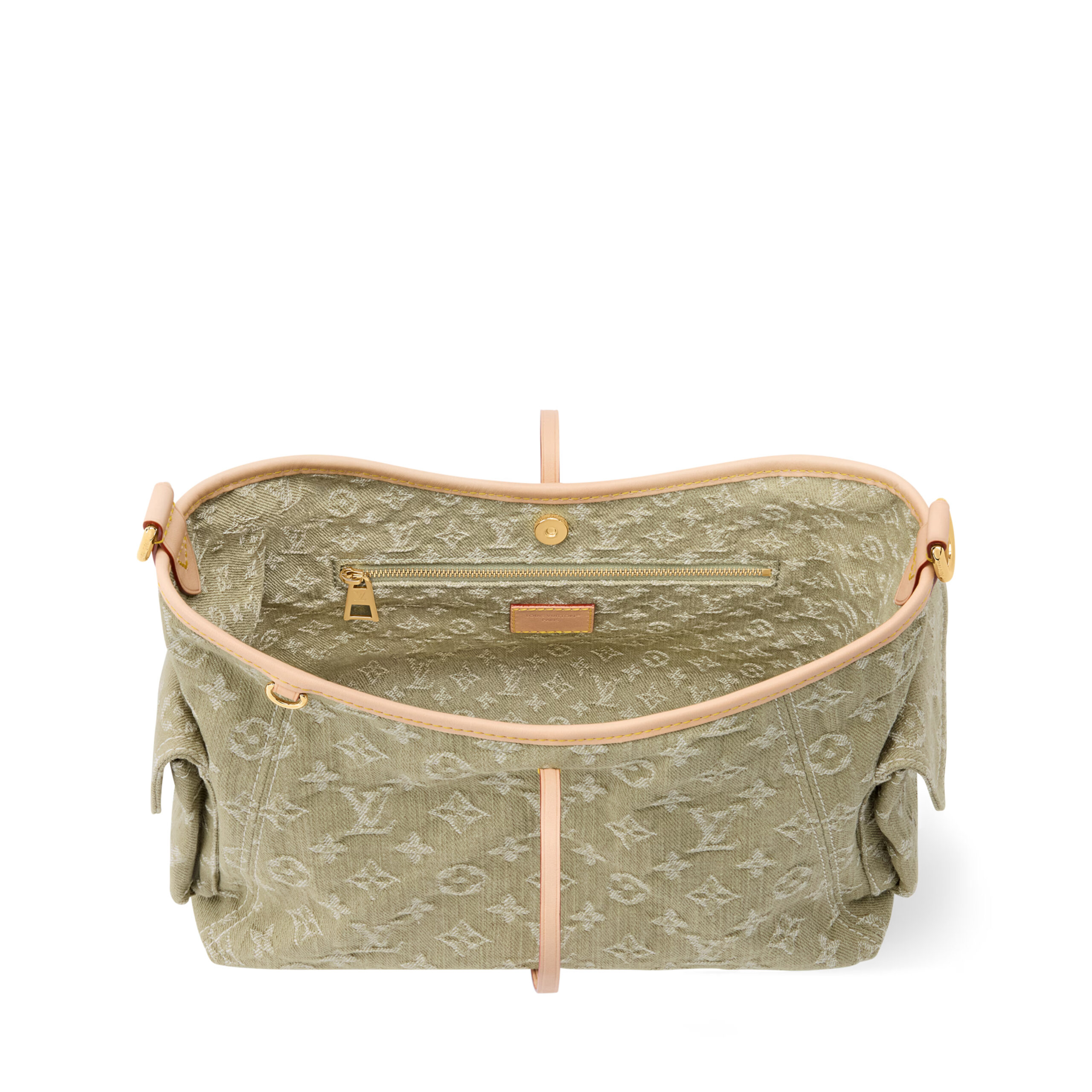Part of the Denim Rendez-Vous collection, this Carryall Cargo PM is a seasonal take on the timeless style. It is crafted from cotton and trimmed with a contrasting leather strap and lace details. This Khaki edition is adorned with gold-toned hardware and is accented with a signature name tag, paying tribute to the House’s trunk-making heritage. It can be worn cross-body, over the shoulder or carried by hand.
