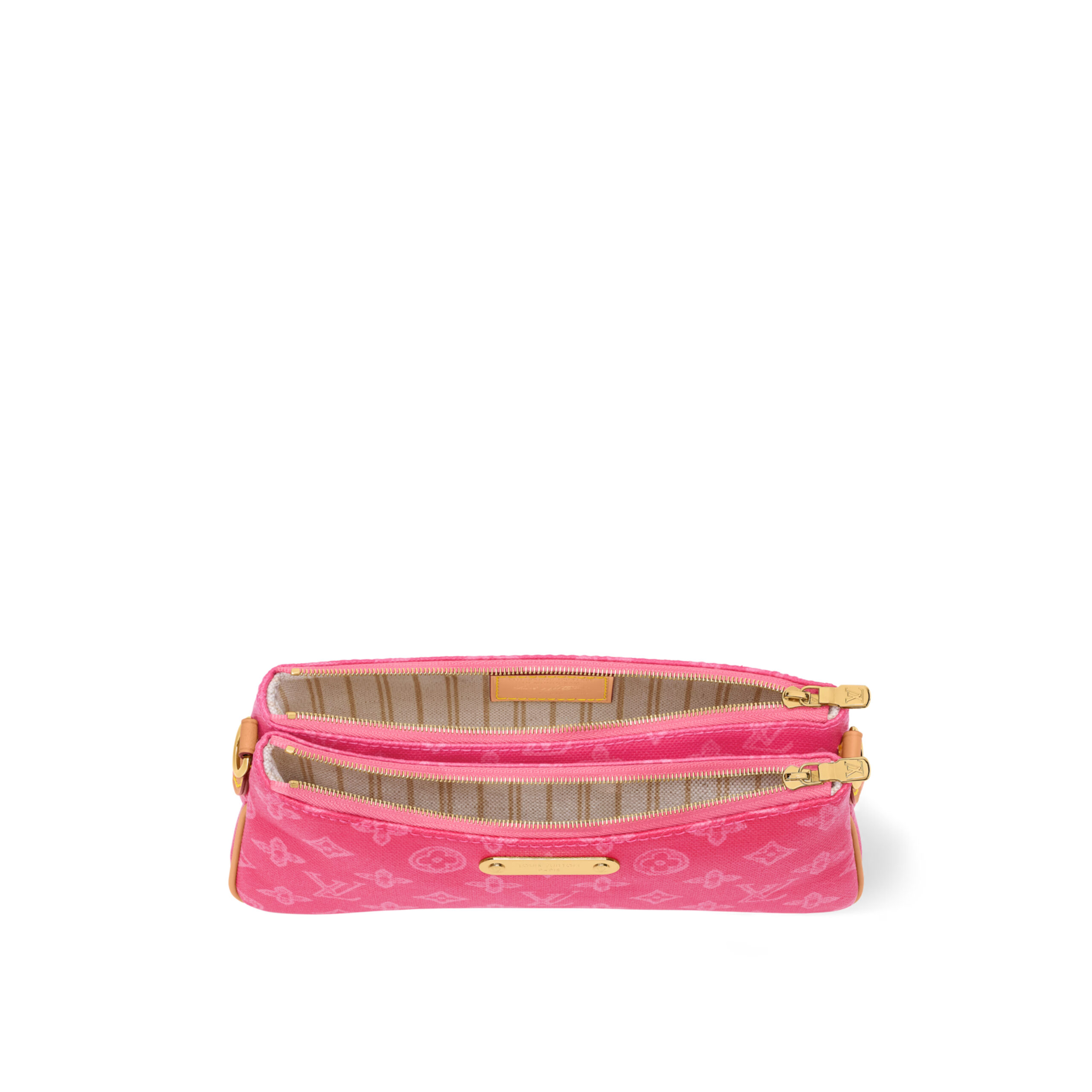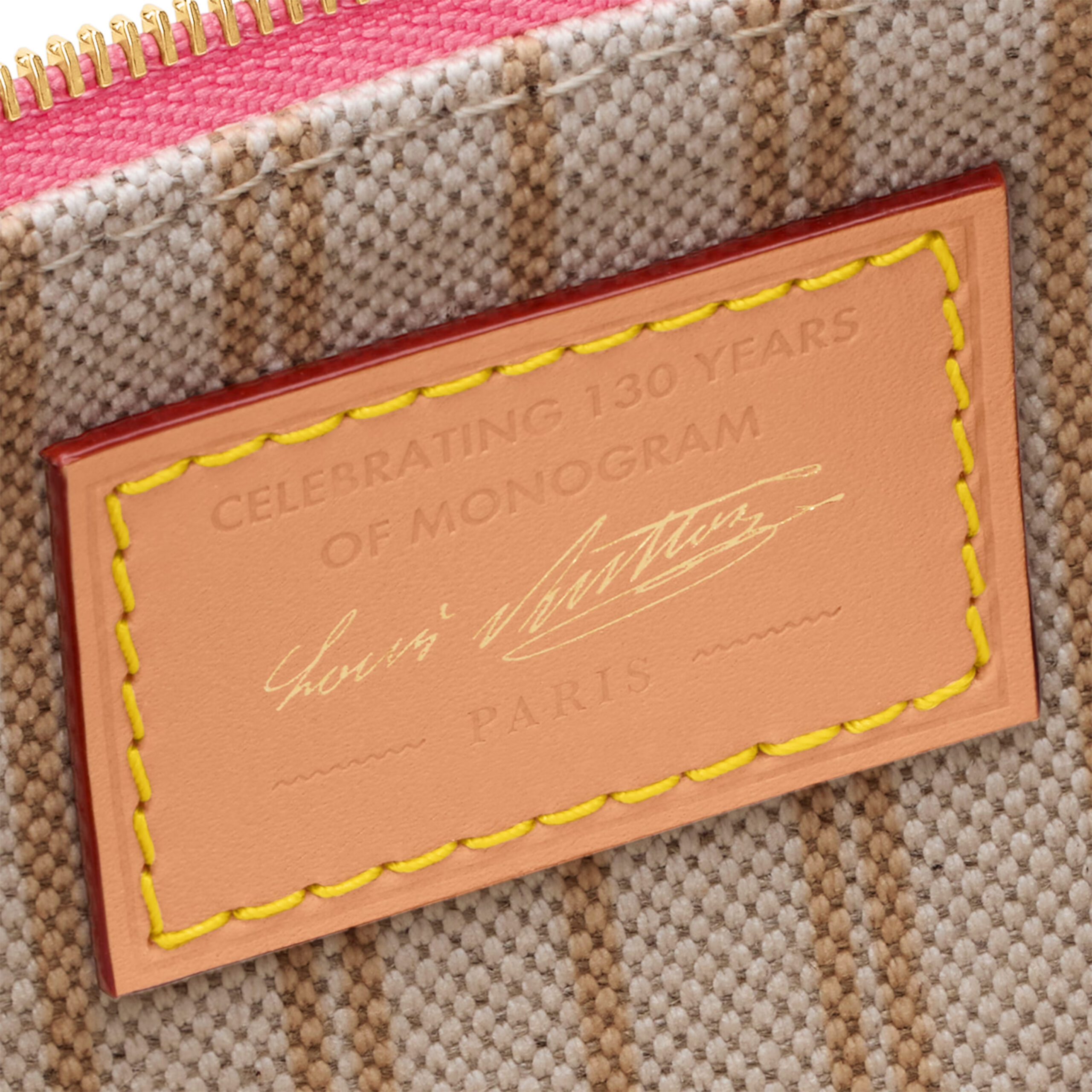 This vibrant edition of the Liv Pochette is designed in celebration of the 130th anniversary of the Louis Vuitton Monogram. Offered in a chic Rose Ruban hue, it features the iconic pattern set against linen and canvas, and is trimmed with cowhide. The elegant chain matches the signature plaque in a sleek gold-toned finish.