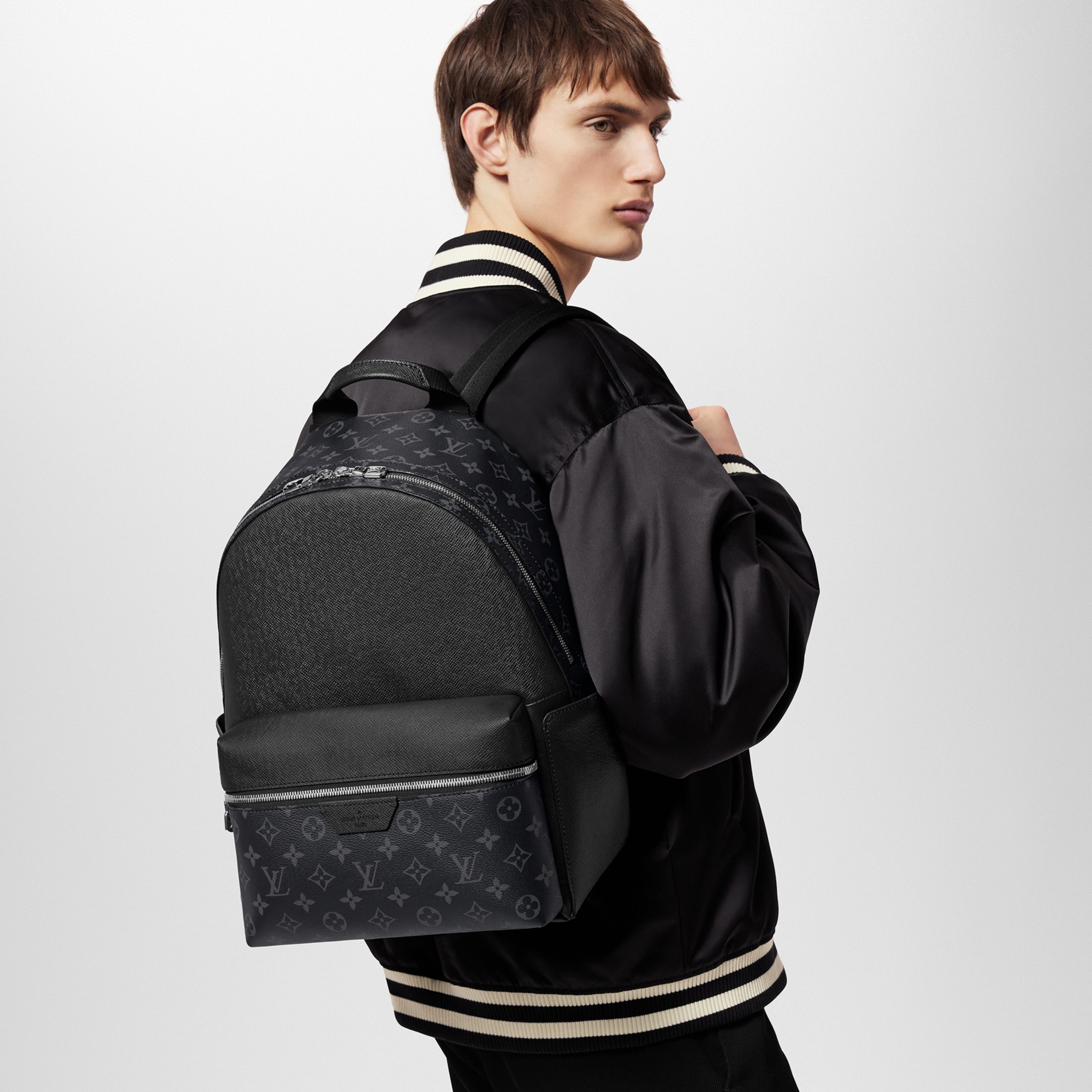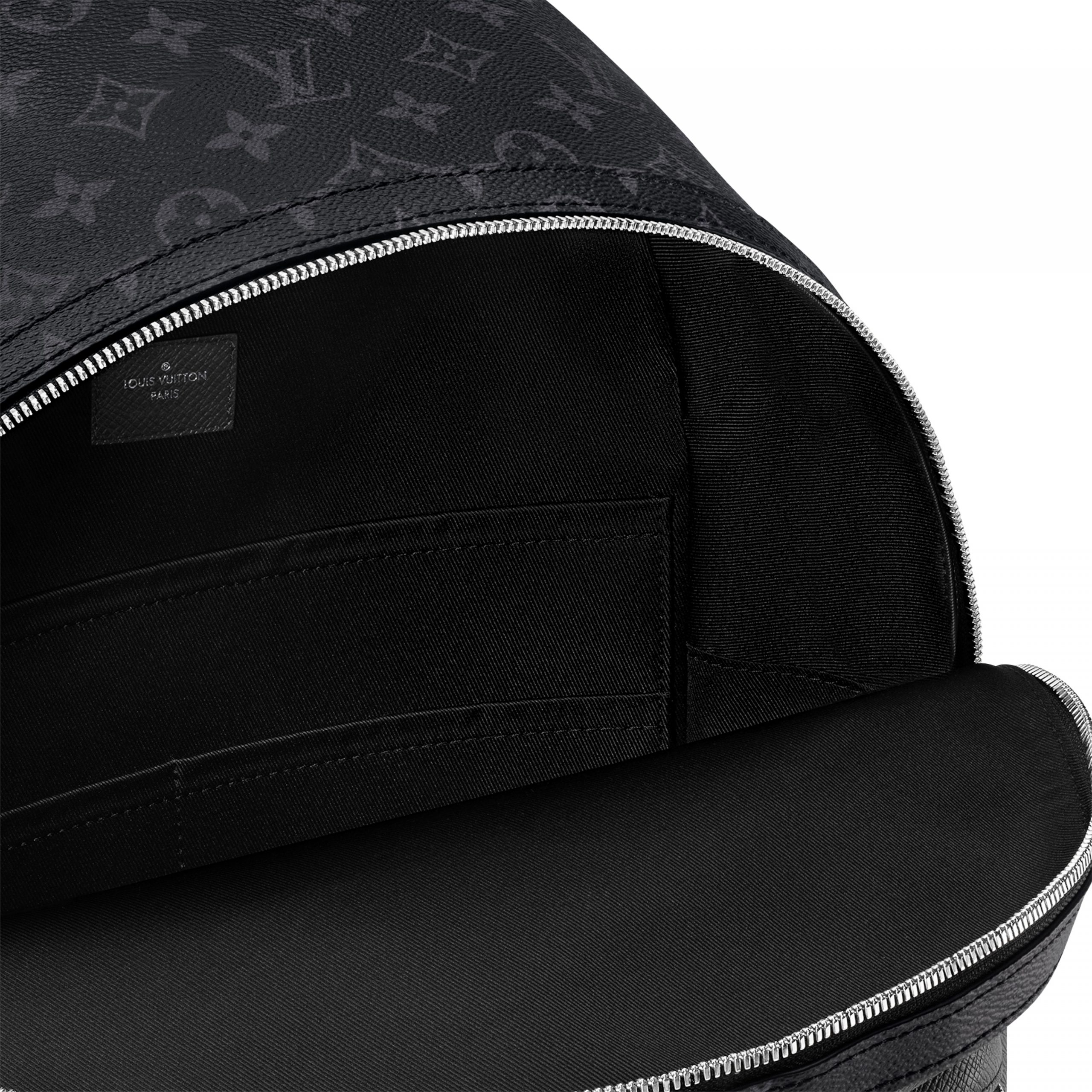 The cool styling of the Discovery Backpack takes on an elegant signature look as part of the Taigarama line. Finely embossed Taiga cowhide is paired with the House’s iconic Monogram canvas in classic black. Ideal for short trips or to carry everyday essentials, it offers multiple compartments, including a special tablet computer pocket.
