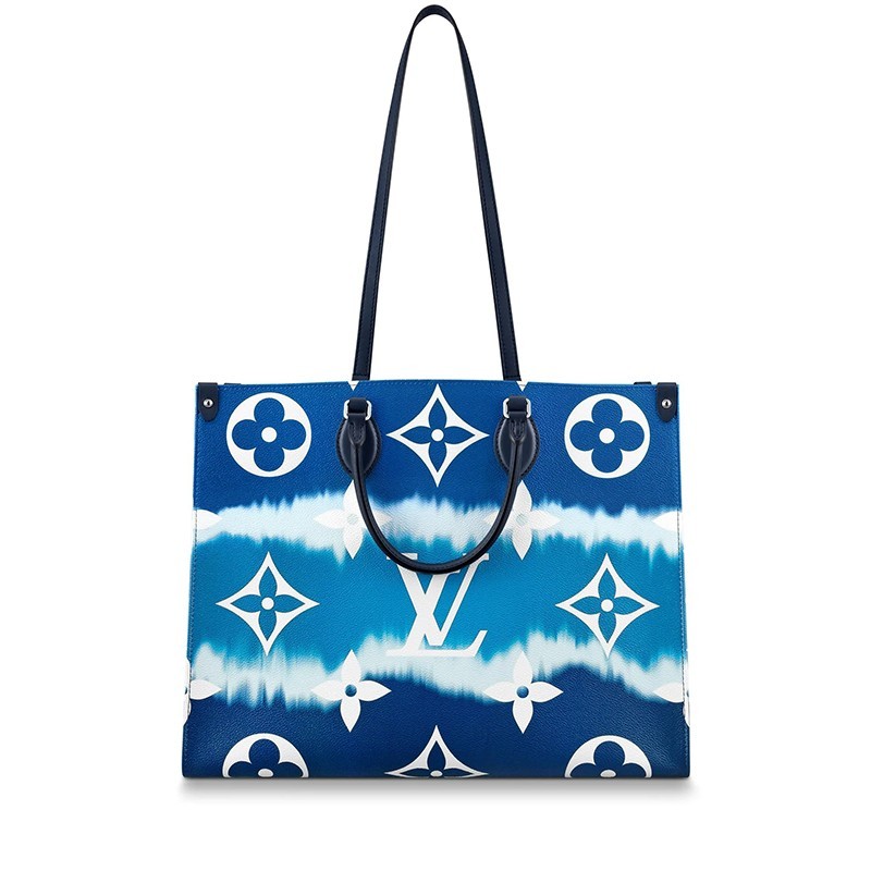Fashioned from Monogram Giant canvas, the Onthego tote bag is as striking as it is practical. Onthego large Tote bag follows the traditional Japanese dyeing process, knotting, folding and dyeing the fabric, showing the fresh beach interest of the Louis Vuitton Escale series in the summer of 2020. With its generous capacity, shoulder straps and iconic Toron top handles, this versatile GM model is an ideal bag for everyday wear.