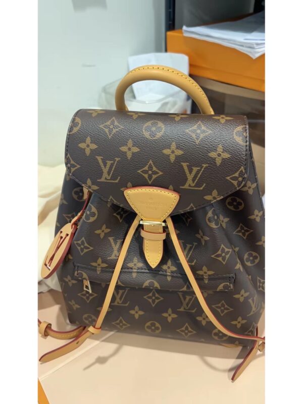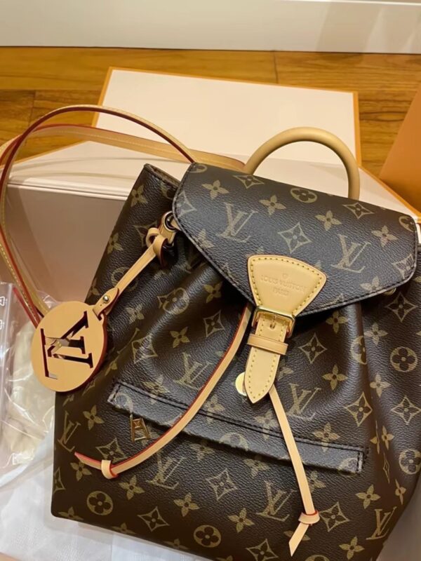 The Montsouris PM is an elegant new backpack made from Monogram canvas and cowhide leather, it closes with a archive Louis Vuitton buckle and leather drawstrings. Practical, with a roomy interior, it features an outside zipped pocket. The top handle and adjustable leather straps allow multiple carry options.