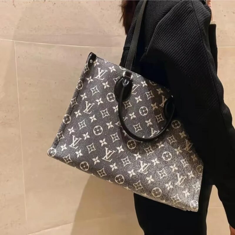 The classic monogram denim tote bag has been quite popular lately. The gray color is very versatile, and the denim texture is also very sturdy and durable. It’s very fashionable.