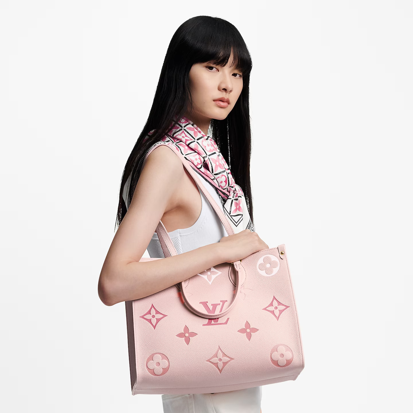 This OnTheGo MM is made from Monogram Empreinte leather, with a gradient Monogram pattern that fades as it approaches the handles. Big Roomy enough for a laptop, this medium-sized tote is an ideal everyday bag. The OnTheGo has two sets of handles: rolled-leather top handles for hand carry as well as a longer pair for shoulder carry.