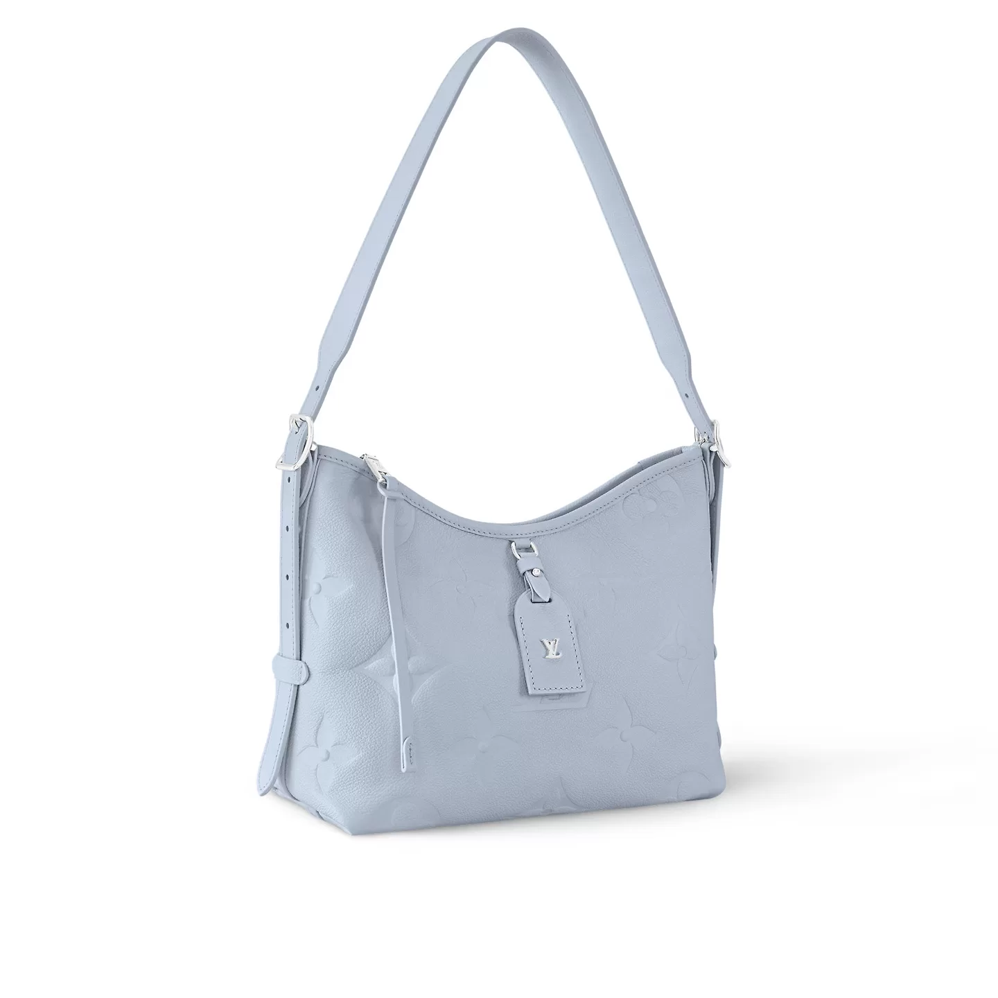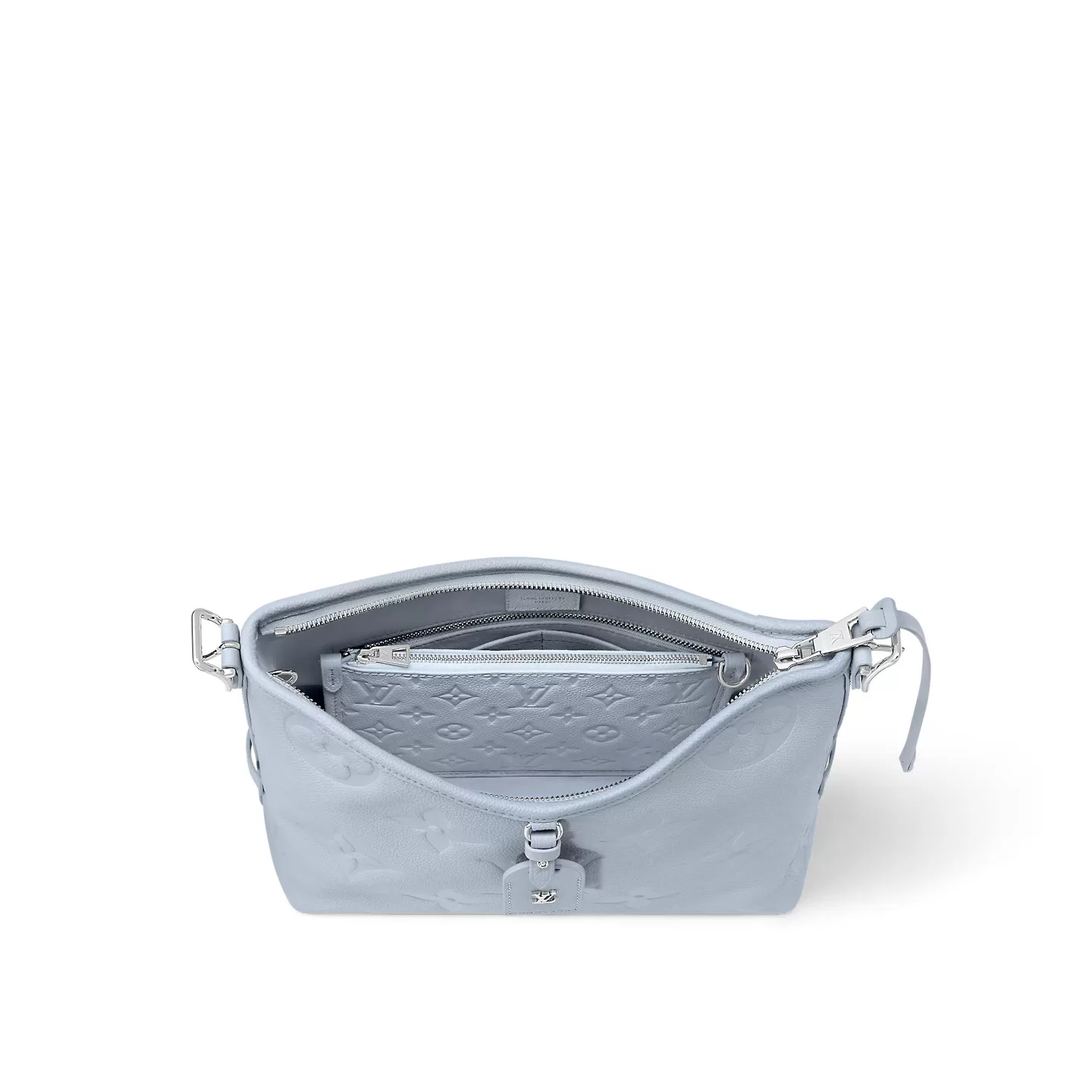 The CarryAll PM is made from Monogram Empreinte grained leather, with the Monogram motif discretely embossed into the cowhide. The silver-color hardware, including the LV Initials on the removable name tag, bring understated elegance. Inside there are numerous pockets and a removable zipped pouch attached to the bag by a leather cord.