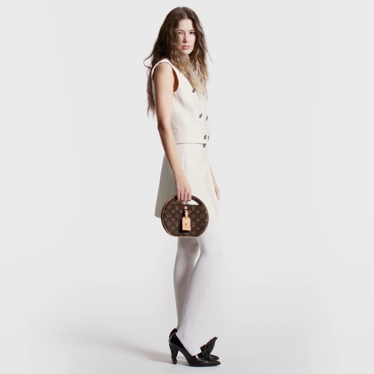 Made from Monogram coated canvas, the Around Me is inspired by the House’s LV Circle signature, an emblem from the 1920s used on Louis Vuitton storefronts and advertising. Seen at the Spring-Summer 2024 Show, this perfectly circular bag features integrated handles for a minimalistic yet elegant look. Its small size makes it adorably stylish.