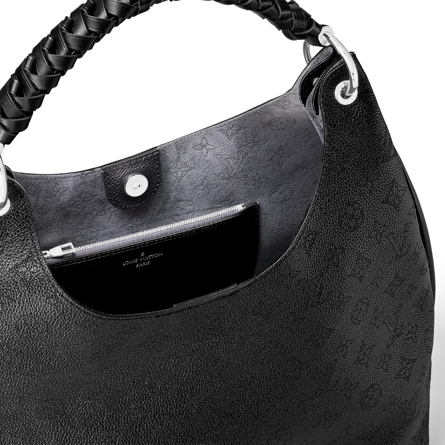 The Carmel hobo bag is a spacious, lightweight style in Mahina calf leather with Monogram perforations. The supple leather and the soft form of the bag combine to make it exceptionally pleasant to carry. Craft details such as the braided handle and LV leather charm add to the sophistication of this model.