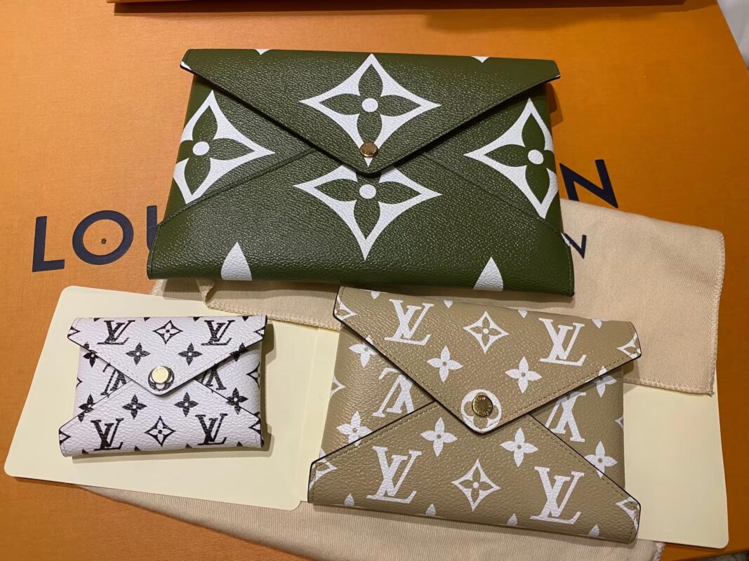 Part of the Summer 2019 collection, this special edition of the Pochette Kirigami plays with different sizes of Monogram canvas in a fresh color combination of khaki and beige. The largest of the three envelopes is ideal for a tablet, the medium one for a passport, and the small one for cards or coins.Detailed features15.5 x 11.5 x 0.5 cm(Length x heightx width )