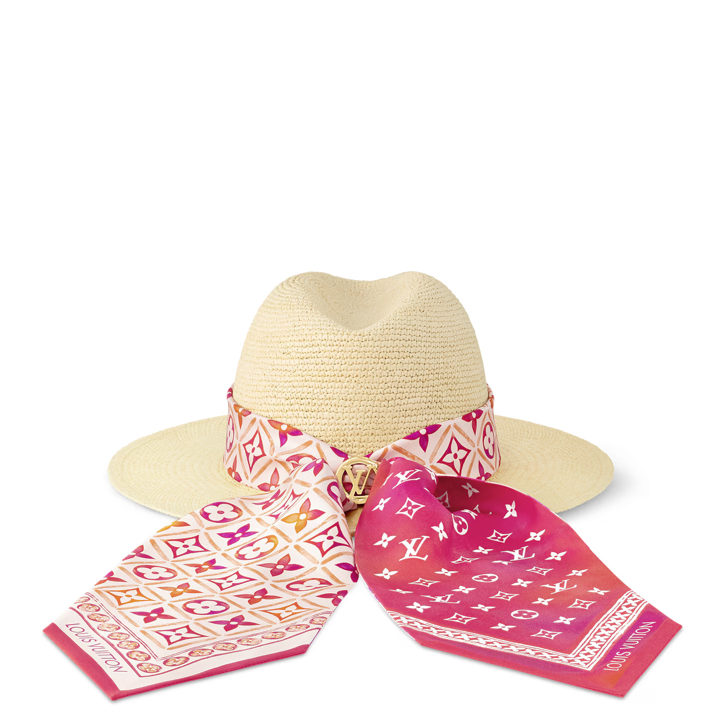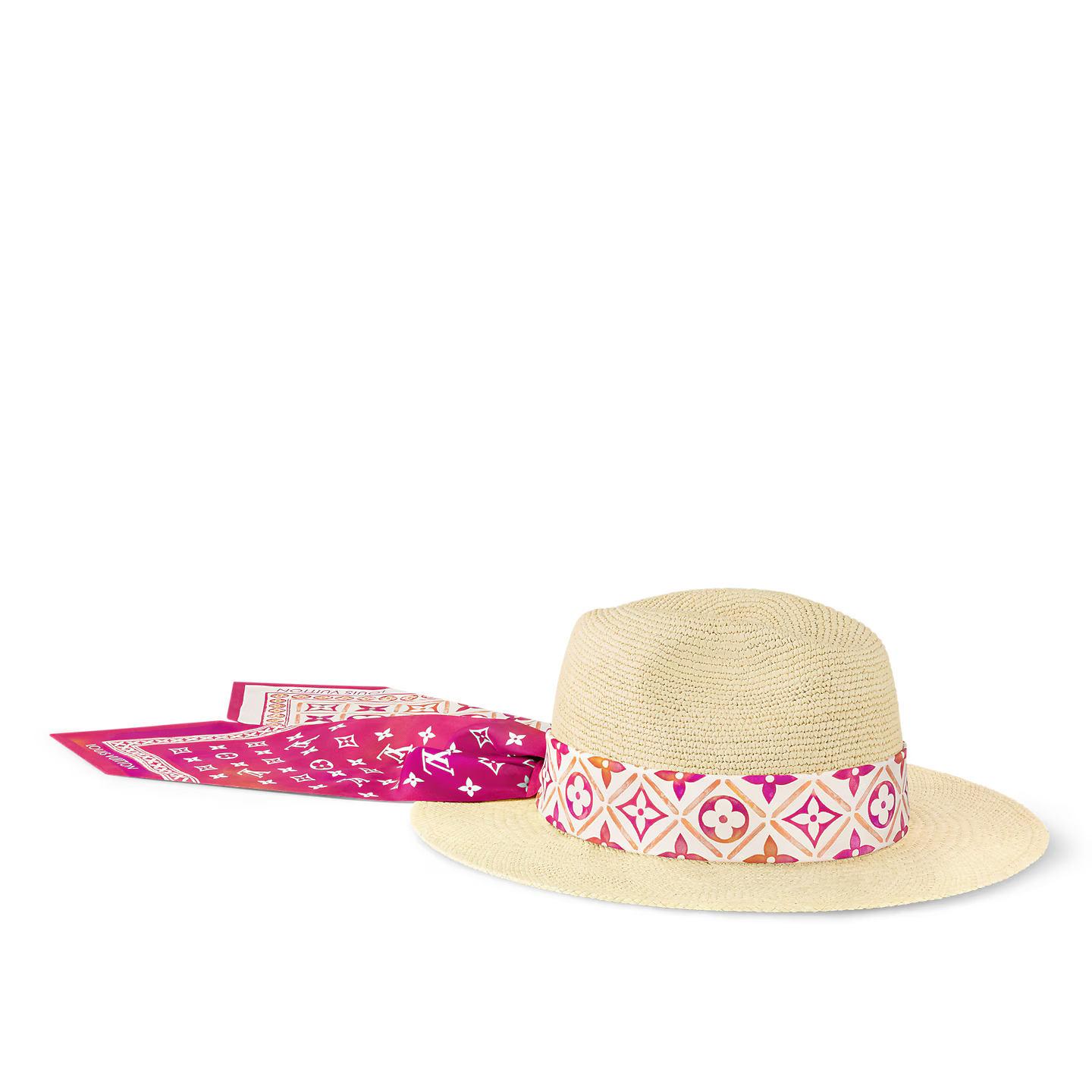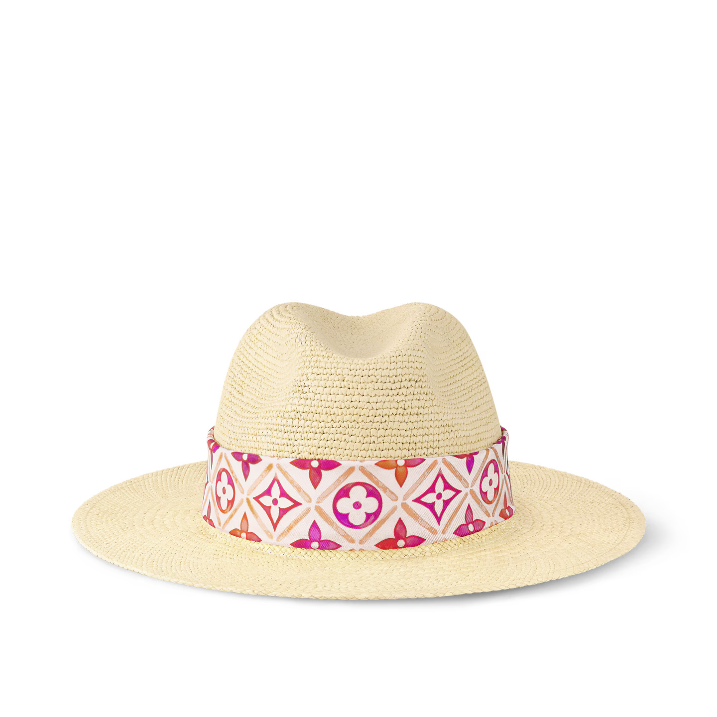 The LV Tiles Panama-style hat combines top-quality craftsmanship with a striking signature look. Hand-woven from carefully selected natural fibers, it comes with a reversible silk bandeau featuring the LV Tiles pattern, held in place by a gold-tone metal LV Circle loop. Cool and comfortable, it’s the ultimate finishing touch for any summer outfit.