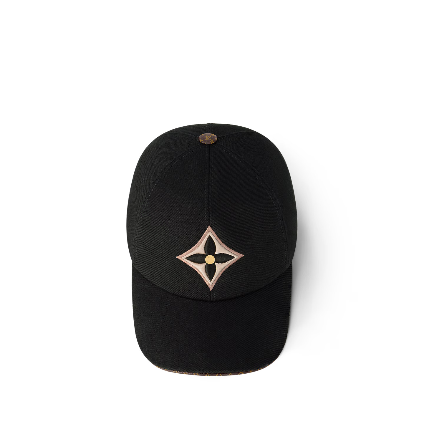 The LV Day cap elevates a casual look with superb craftsmanship. An embroidered Monogram Diamond with bouclette detailing makes for an eye-catching centerpiece, while Monogram jacquard adds a layer of richness. The youthful hat is composed of mixed materials, including breathable cotton and smooth leather.