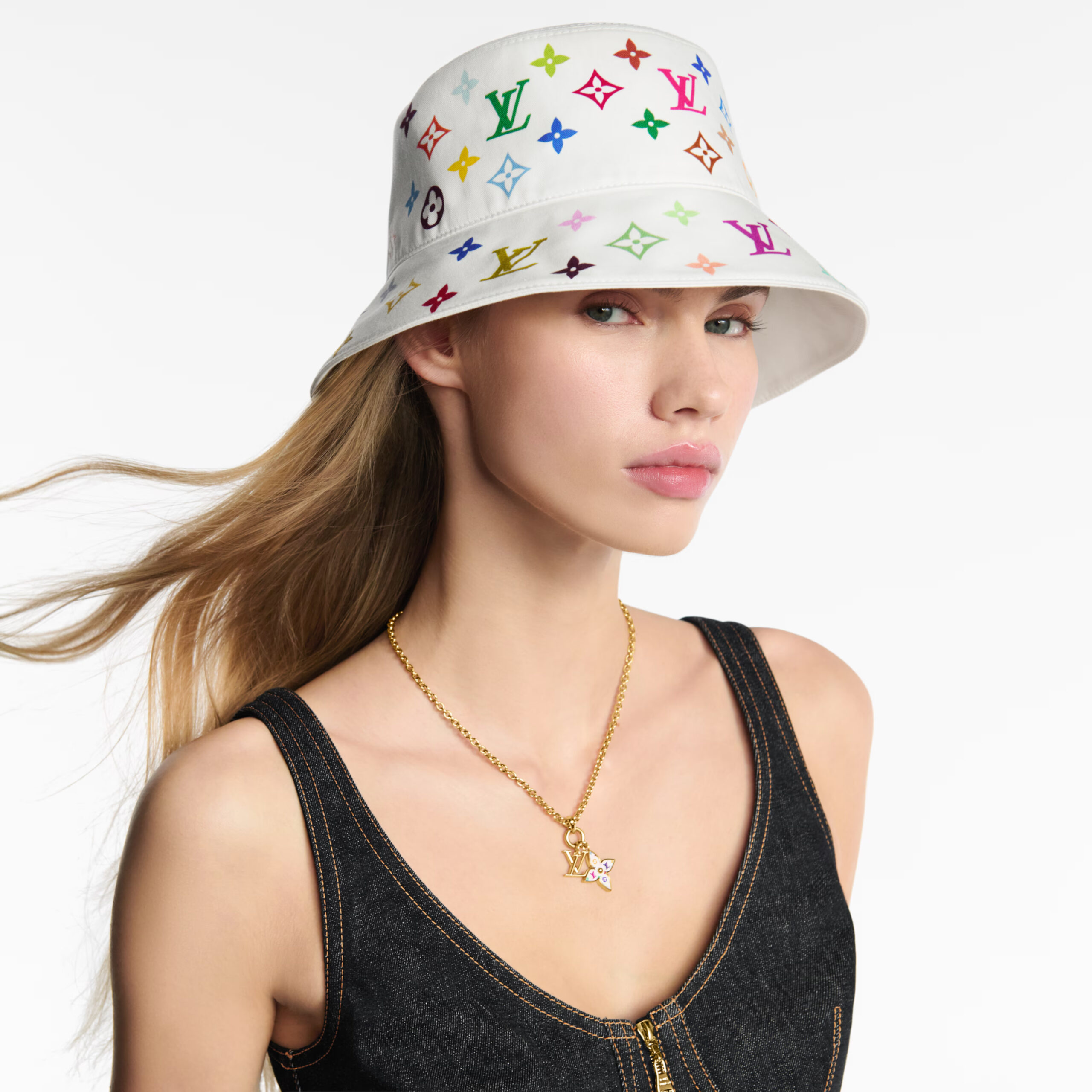The collaboration uniting Louis Vuitton and noted Japanese artist Takashi Murakami presents the Louis Vuitton x Murakami collection, an exclusive range of designs featuring this Daily reversible hat. Fashioned from pure cotton in versatile, sophisticated white, this sporty bucket hat displays Murakami’s colorful LV Hands emblem. Its casual design ensures a comfortable fit for this collectible piece, a great accent for any casual outfit.