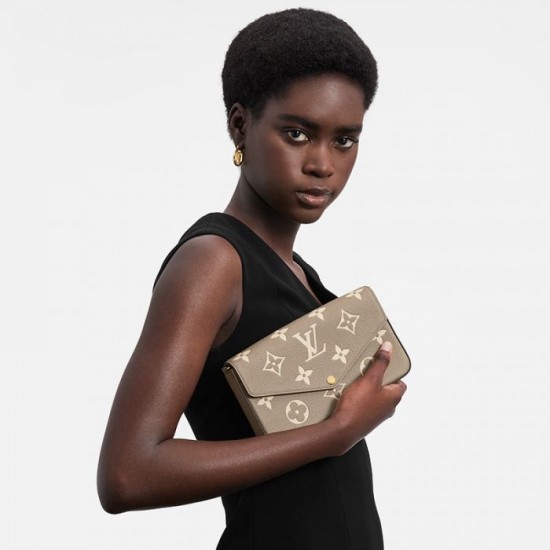 The Félicie Pochette is crafted from supple Monogram Empreinte leather, embossed with Louis Vuitton’s iconic Monogram pattern. The two-tone palette brings added refinement to this elegant and versatile design, which features a removable gold-tone chain that allows it to be carried on the shoulder or as a clutch, as well as two removable pockets.