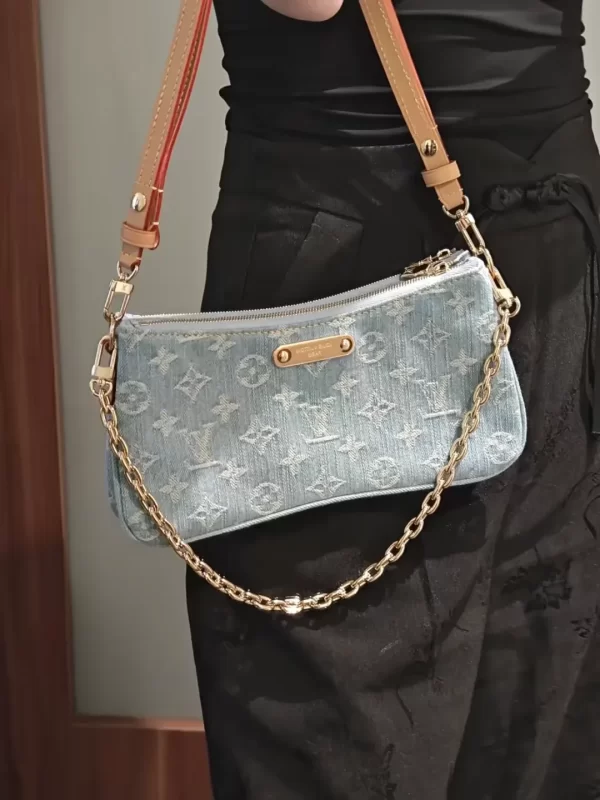 The LV denim shoulder bag — I’m absolutely obsessed with this color combo! It’s just so my vibe!