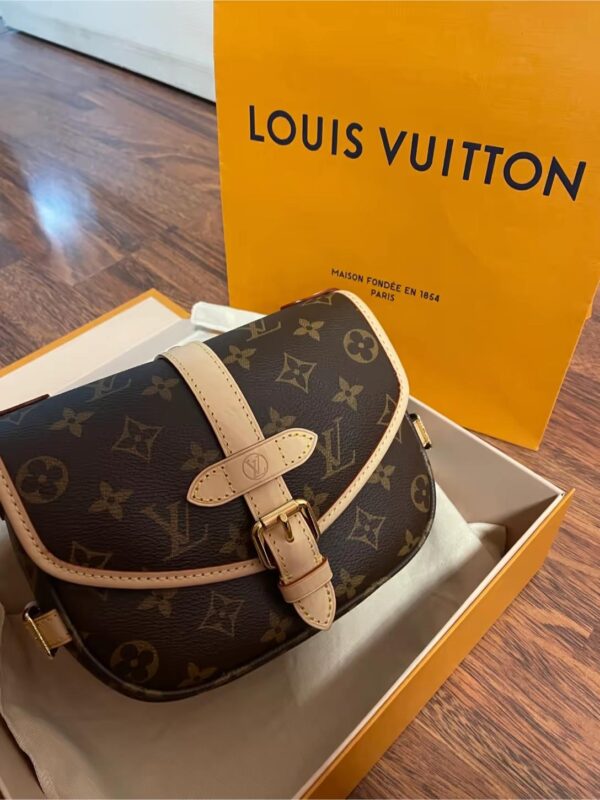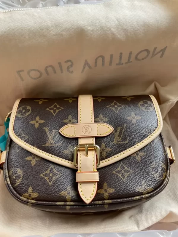 The Saumur BB handbag in Monogram canvas reimagines a beloved archival design in contemporary style. The saddle-bag shape and natural cowhide-leather buckles evoke an equestrian spirit, but the front buckle conceals a magnetic closure: a convenient modern touch. With room inside for a day’s essentials, this compact bag is versatile too, thanks to the detachable strap and handle.