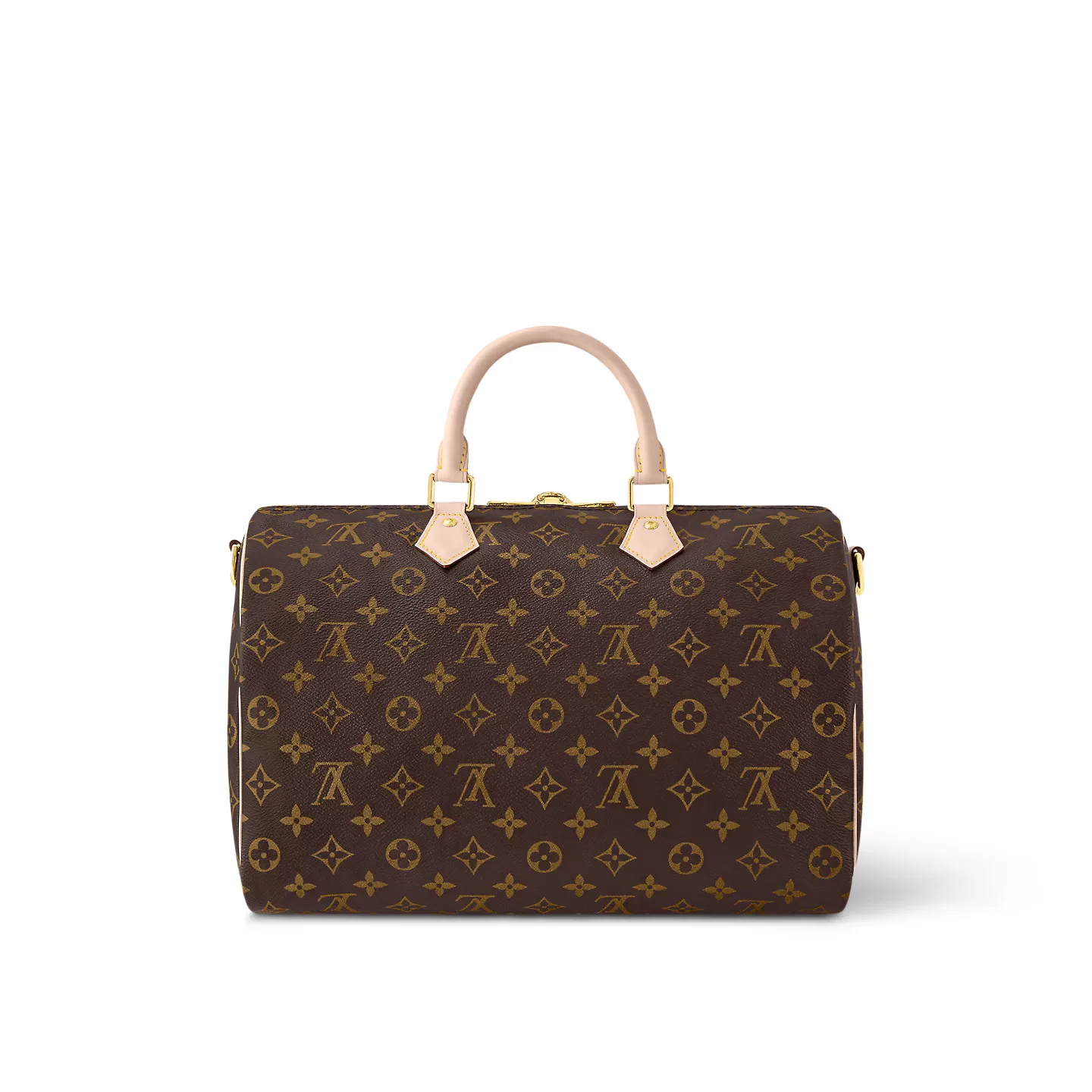 A timeless handbag that is always on-trend, the Speedy Bandoulière 35 in Monogram canvas holds all the essentials for busy lifestyles. Originally created for travelers in the 1930s – the name refers to the era’s rapid transit – every feature of the Speedy’s design is iconic, from its unmistakable shape to the rolled leather handles, engraved padlock and detachable strap.