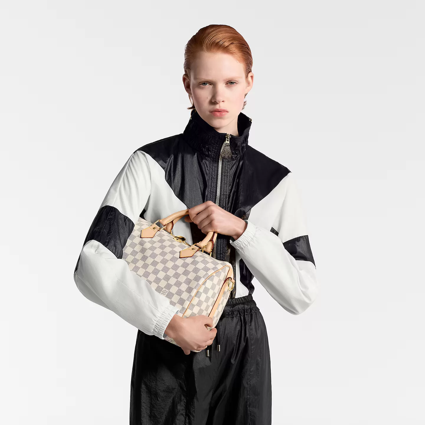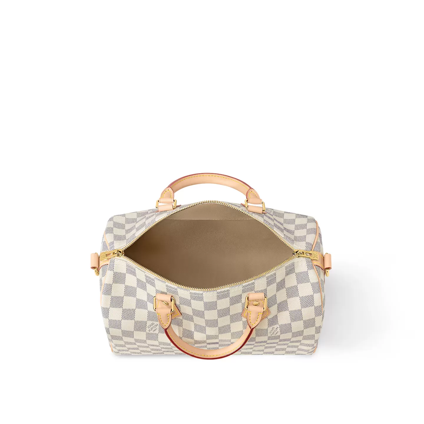 The Speedy Bandoulière 30 handbag in luminous Damier Azur canvas is an ideal choice for summer in the city. Originally created for travelers in the 1930s – the name refers to the era’s rapid transit – every feature of the Speedy’s design is iconic, from its unmistakable shape to the rolled leather handles, engraved padlock and detachable strap.