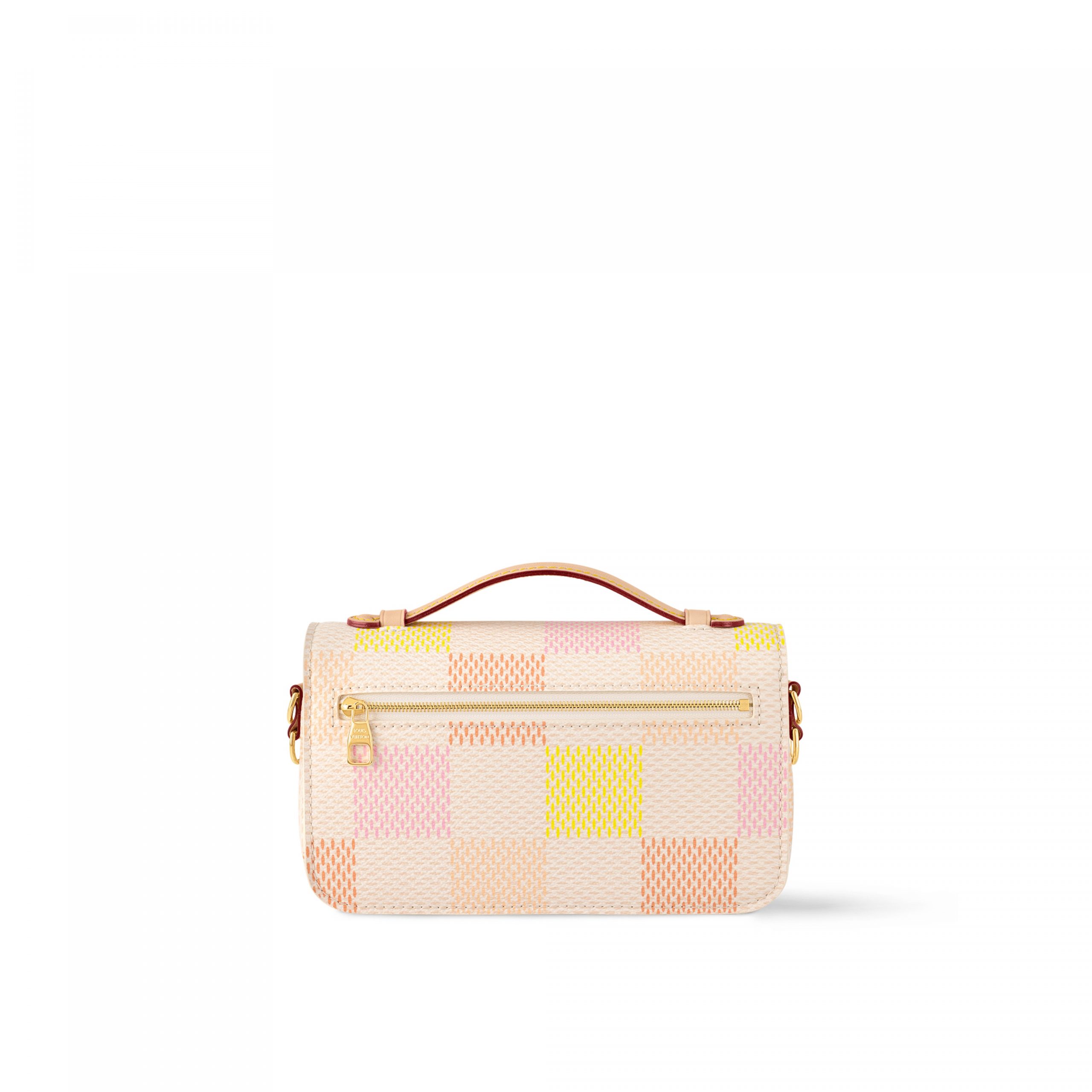 Fashioned from Damier Giant canvas in a pastel colorway, the Pochette Métis East West takes part in the Damierlicious capsule. This stylish shapes features an S-lock and removable short chain, both with a golden finish. The organized interior and the adjustable and removable leather strap make this compact bag perfect for women on the go.