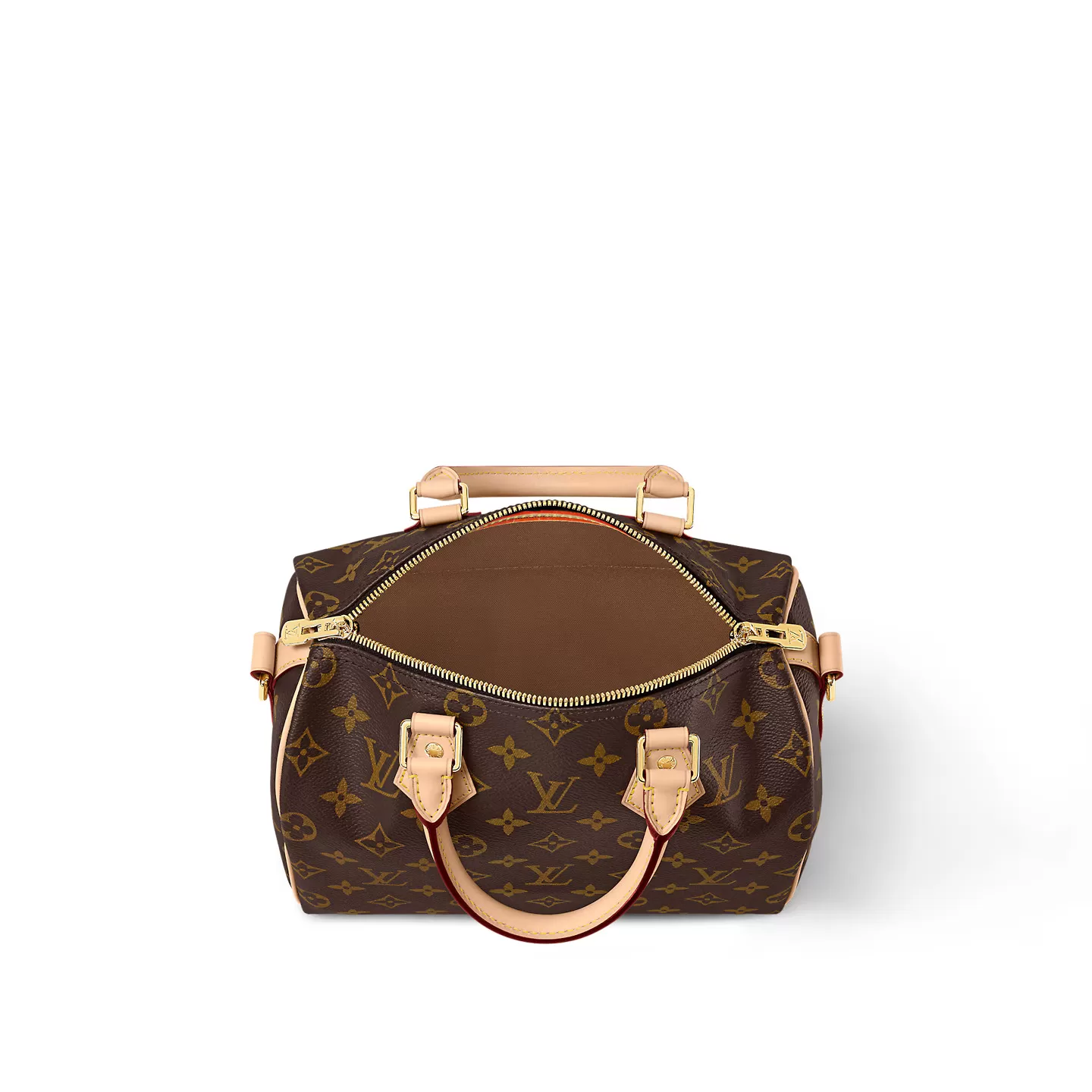 The Speedy Bandoulière 25 in signature Monogram canvas is an ideal city bag for every day. Originally created for travelers in the 1930s – the name refers to the era’s rapid transit – every feature of the Speedy’s design is iconic, from its unmistakable shape to the rolled leather handles, engraved padlock and detachable strap.